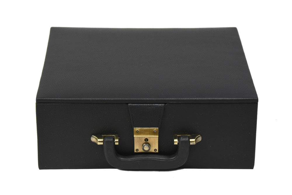 Black Leatherette Chess Set Storage Box Coffer with Double Tray Fixed Slots for 3.75" - 4.1" Pieces