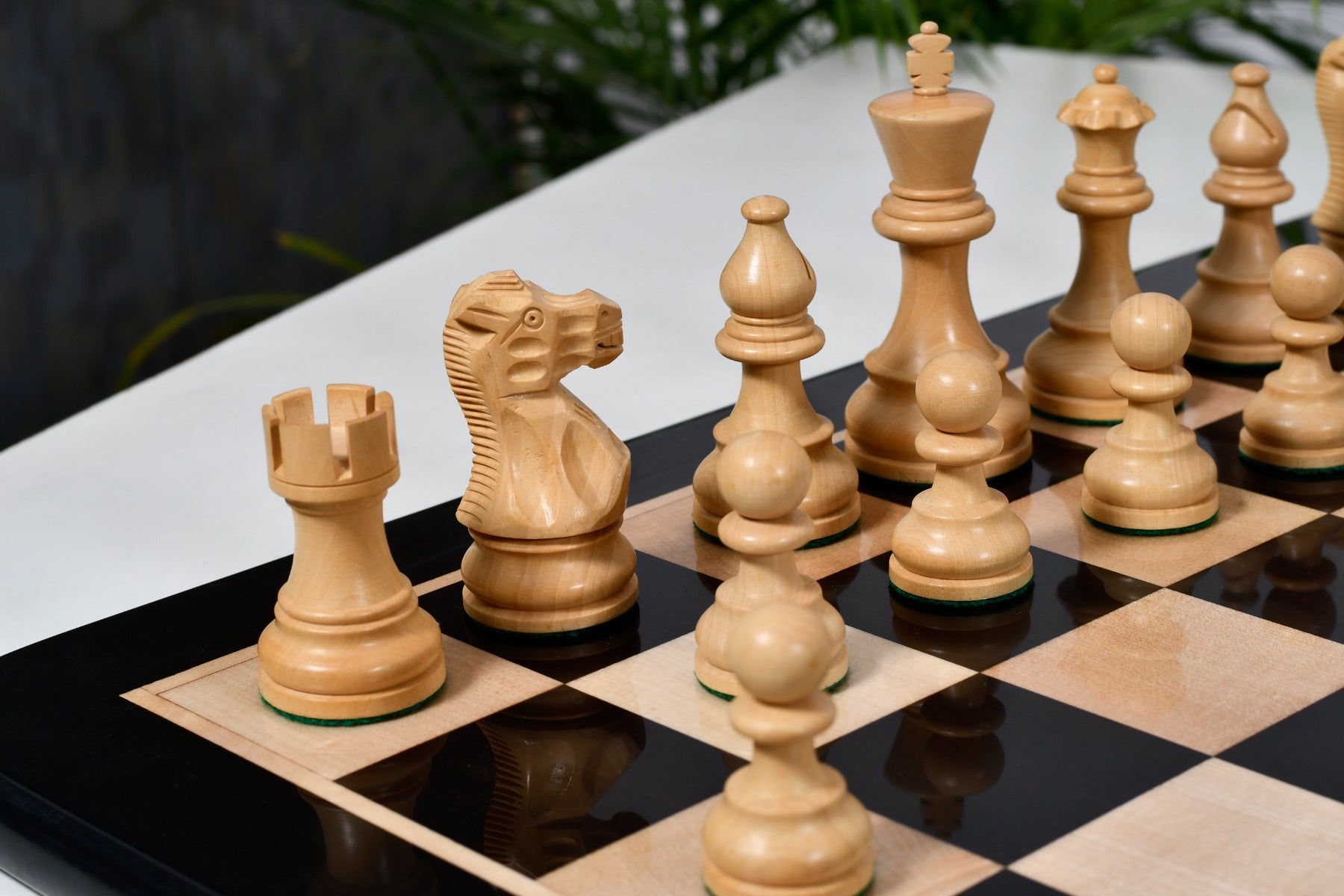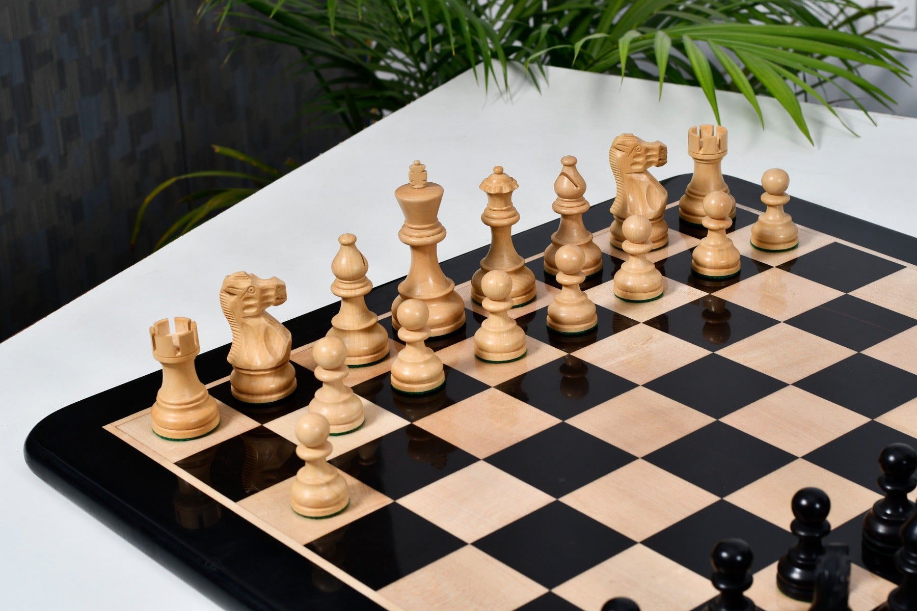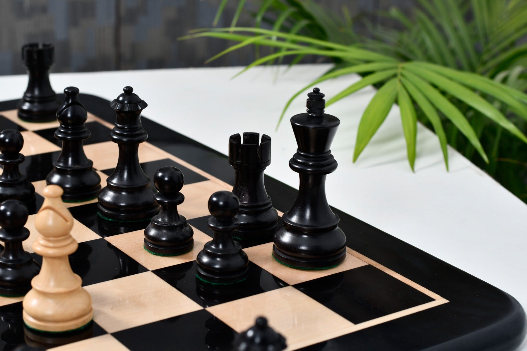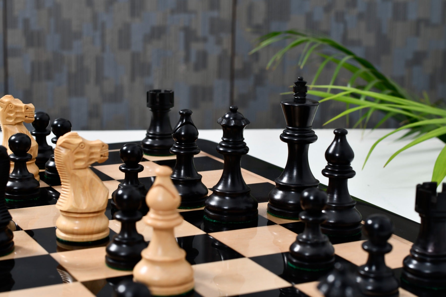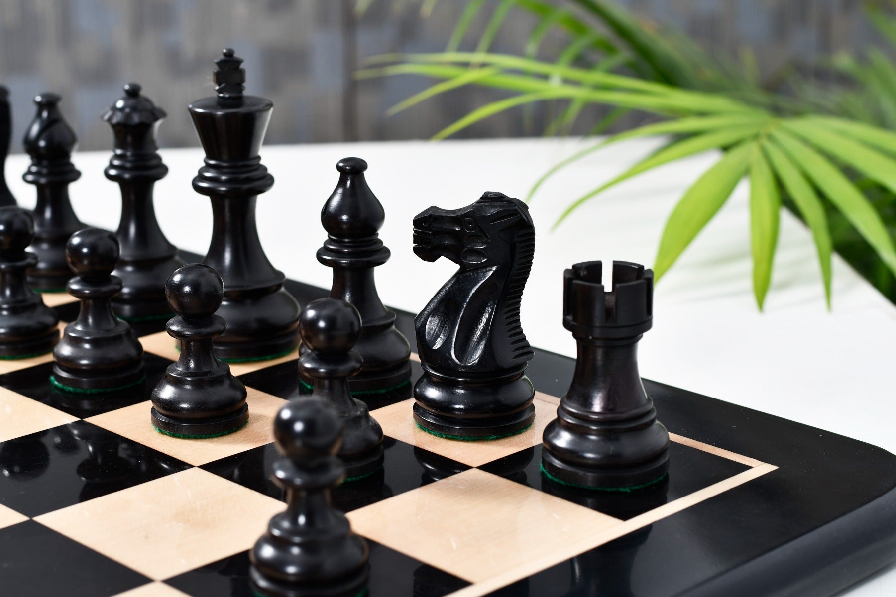 The Smokey Staunton Chess Pieces in Ebonized/Boxwood- 3.8" King with Board