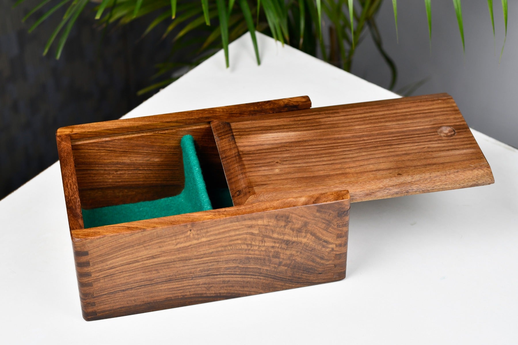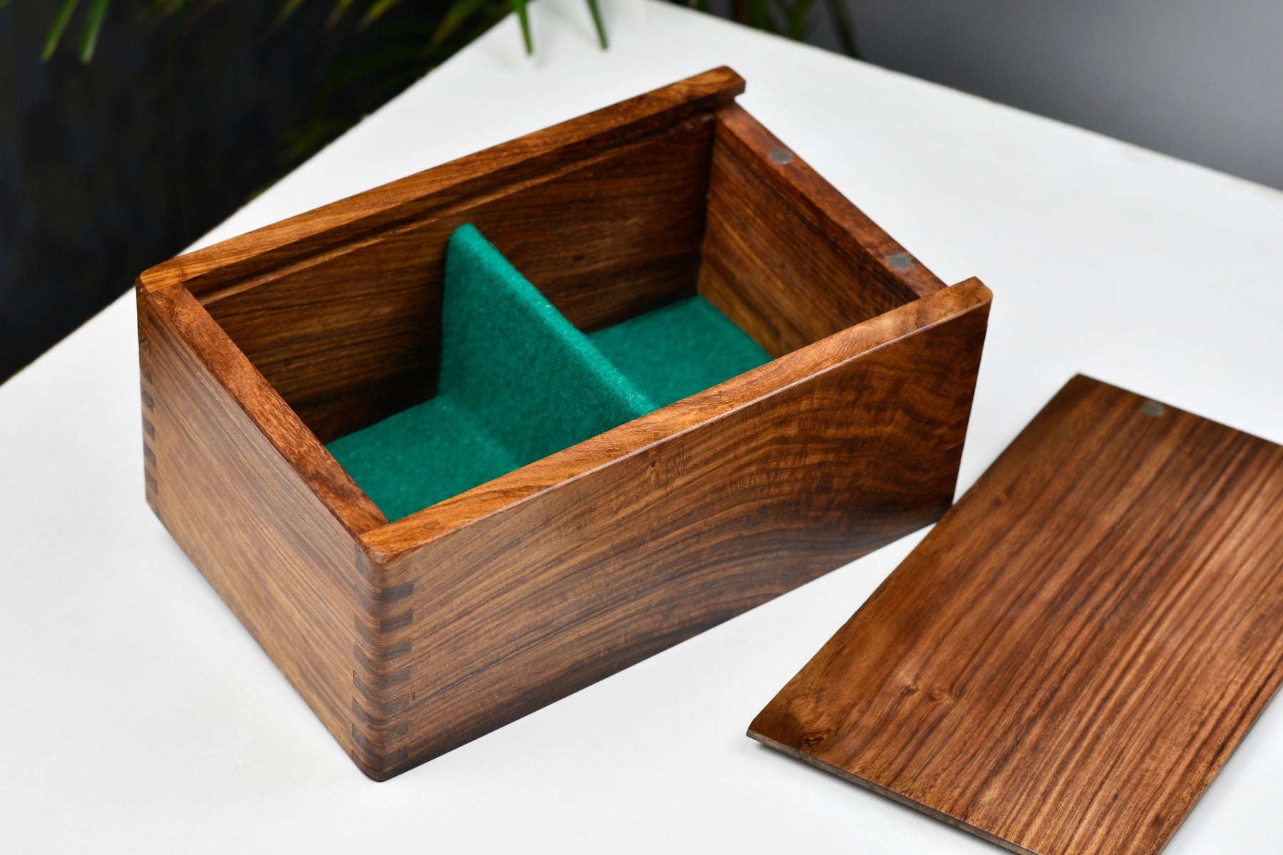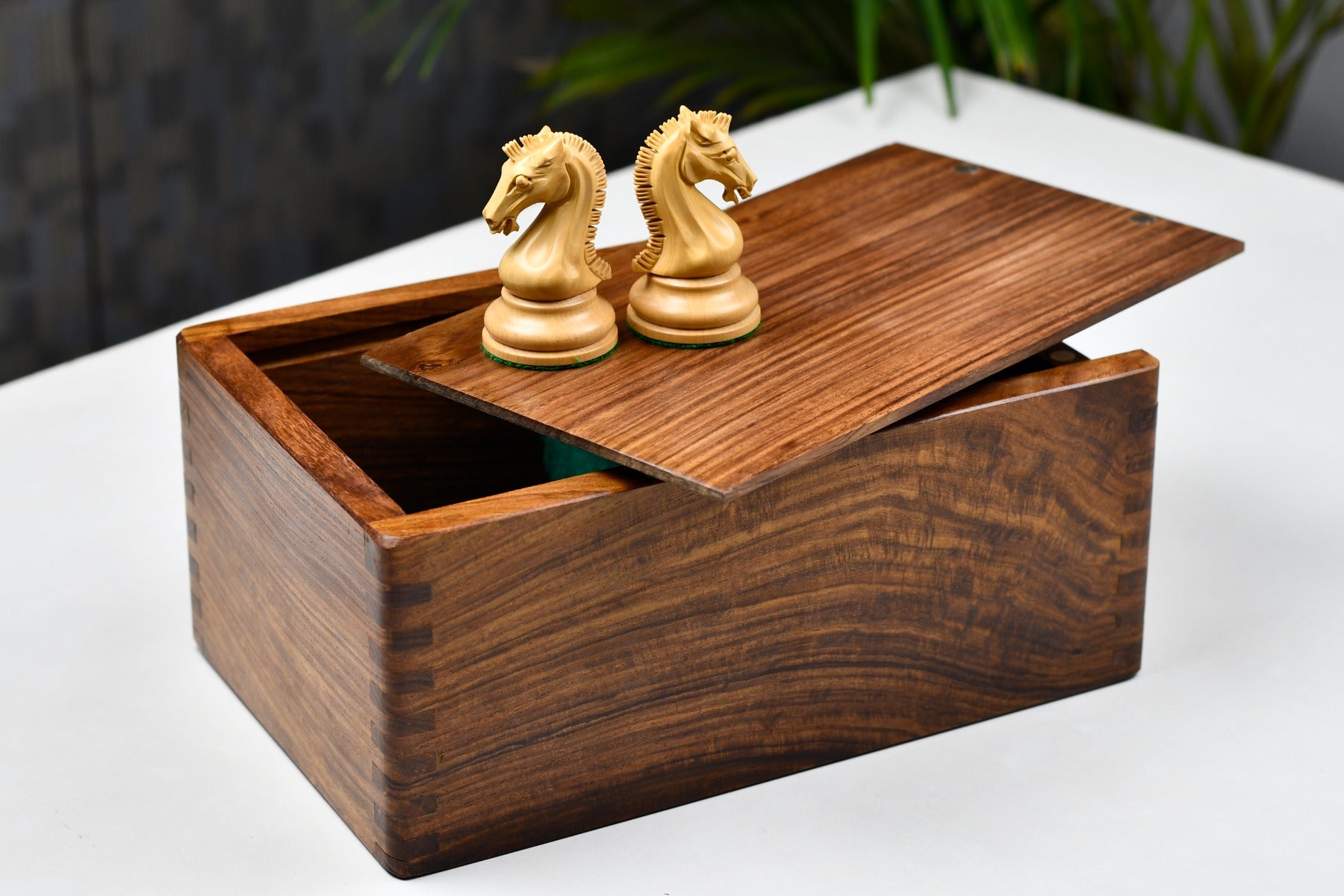 This sale is for a Wooden Storage Case (chest) in Sheesham Wood (Golden Rose Wood). The Box has been lined with thick green felt to protect the pieces from scratching. The box is fitted with a sliding lid. The listing is for an empty storage box only and the chess pieces are not included in the sale.