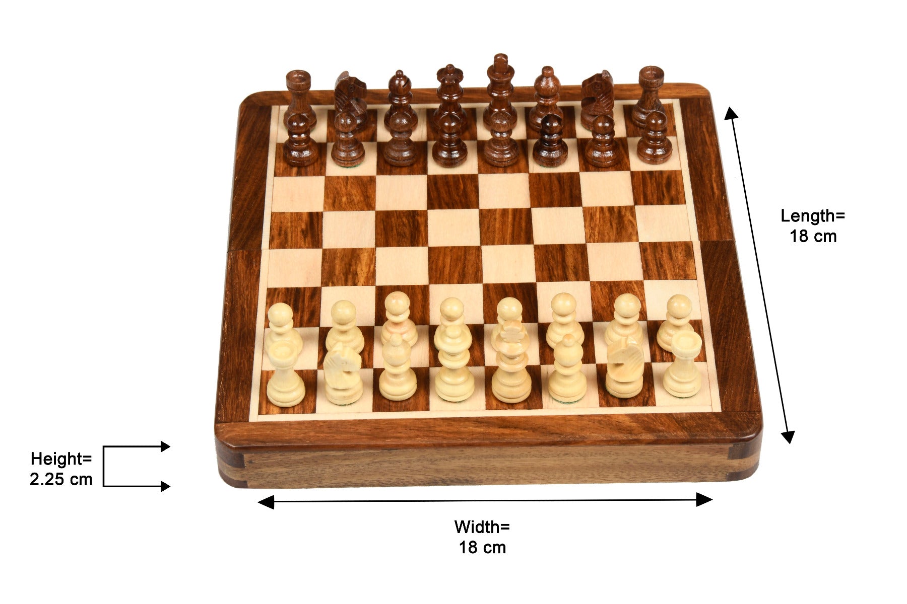This sale is for a Folding Traveling Magnetic Chess Set in Sheesham Wood (Golden Rose Wood). Chess Set made of Sheesham Wood on the darker side and Box Wood on the lighter side.