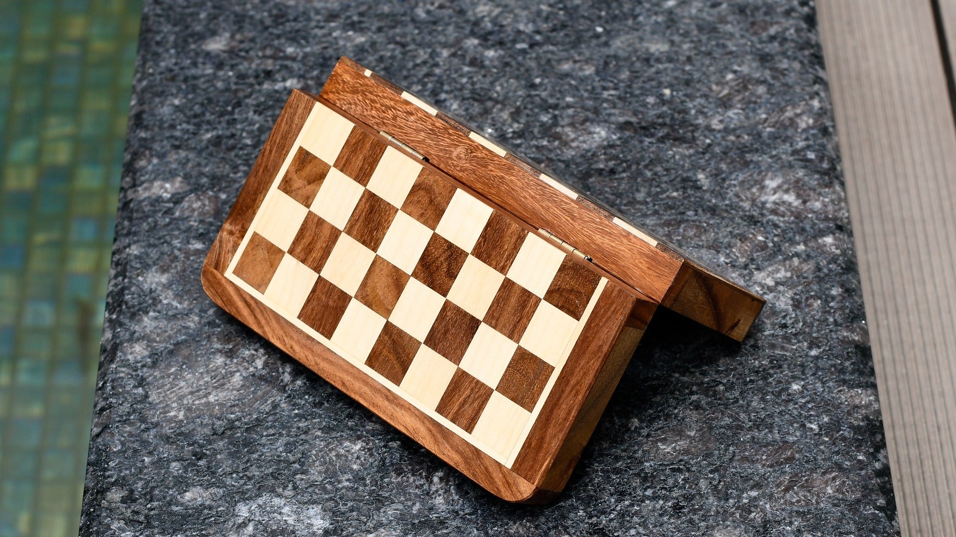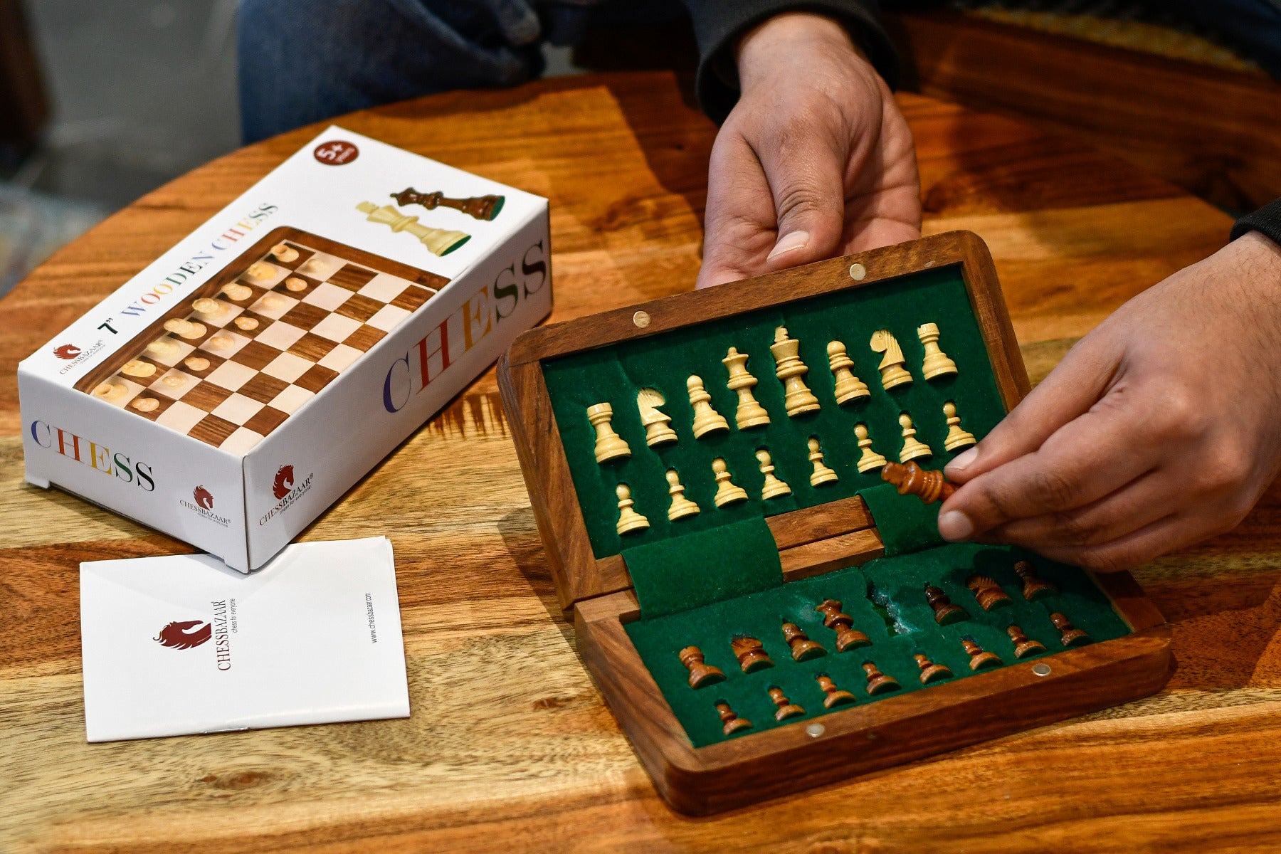 Travel-Friendly Folding Magnetic Chess Set – 7” Sheesham & Maple Lacquered Board