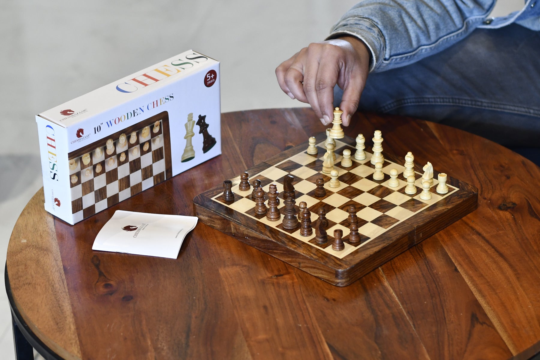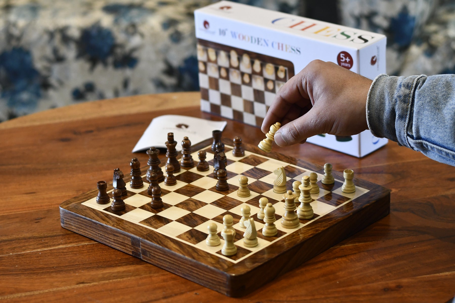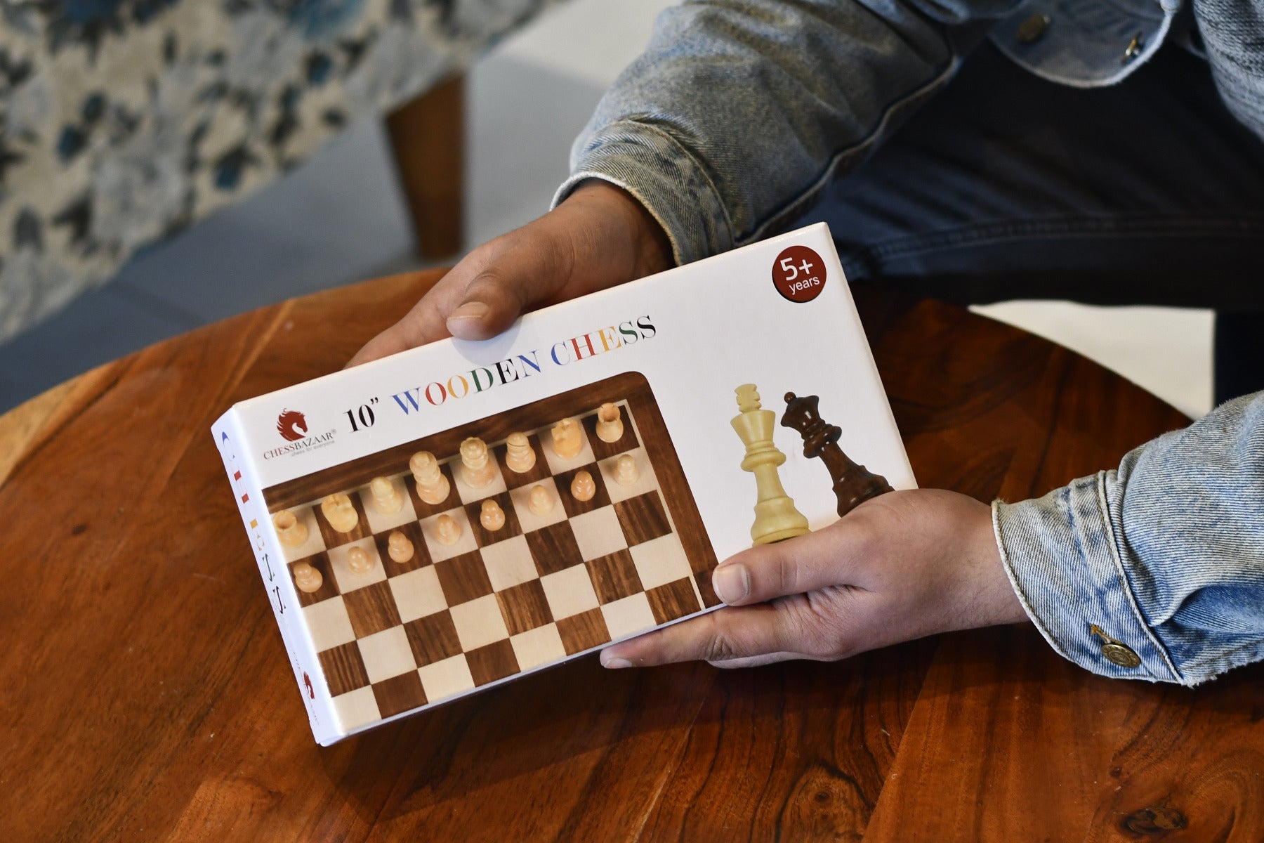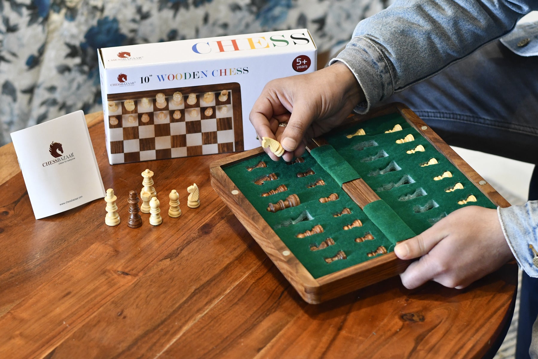 Travel Series Folding Magnetic Lacquer Chess Set in Sheesham & Maple Wood - 10 Inch Portable Board