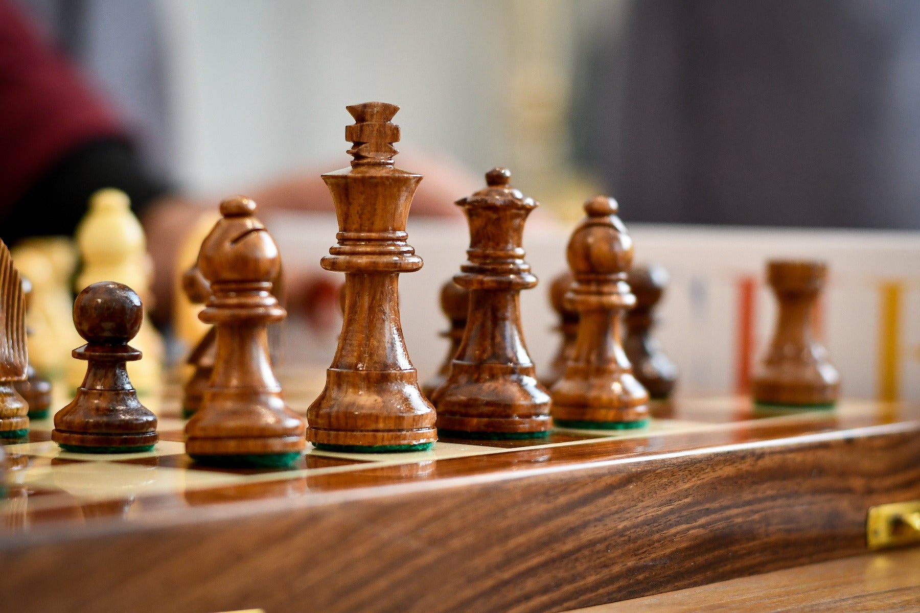 Traveling Folding Magnetic Chess Set with fitted slots for Chessmen in Sheesham Wood (Golden Rose Wood).