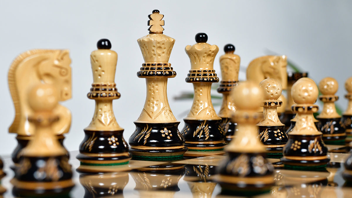 1959 Russian Zagreb Chess Pieces in Burnt & Natural Boxwood 3.89" | CHESSBAZAAR