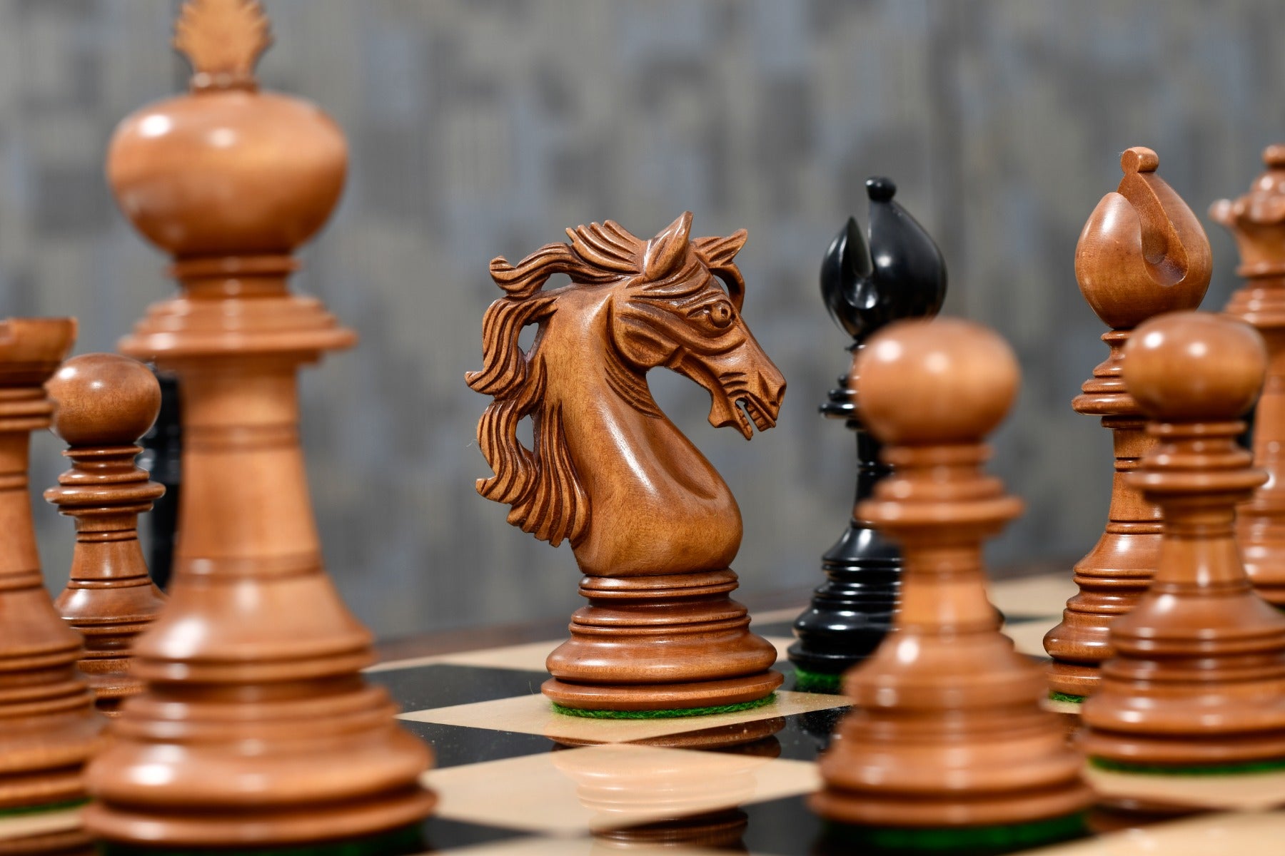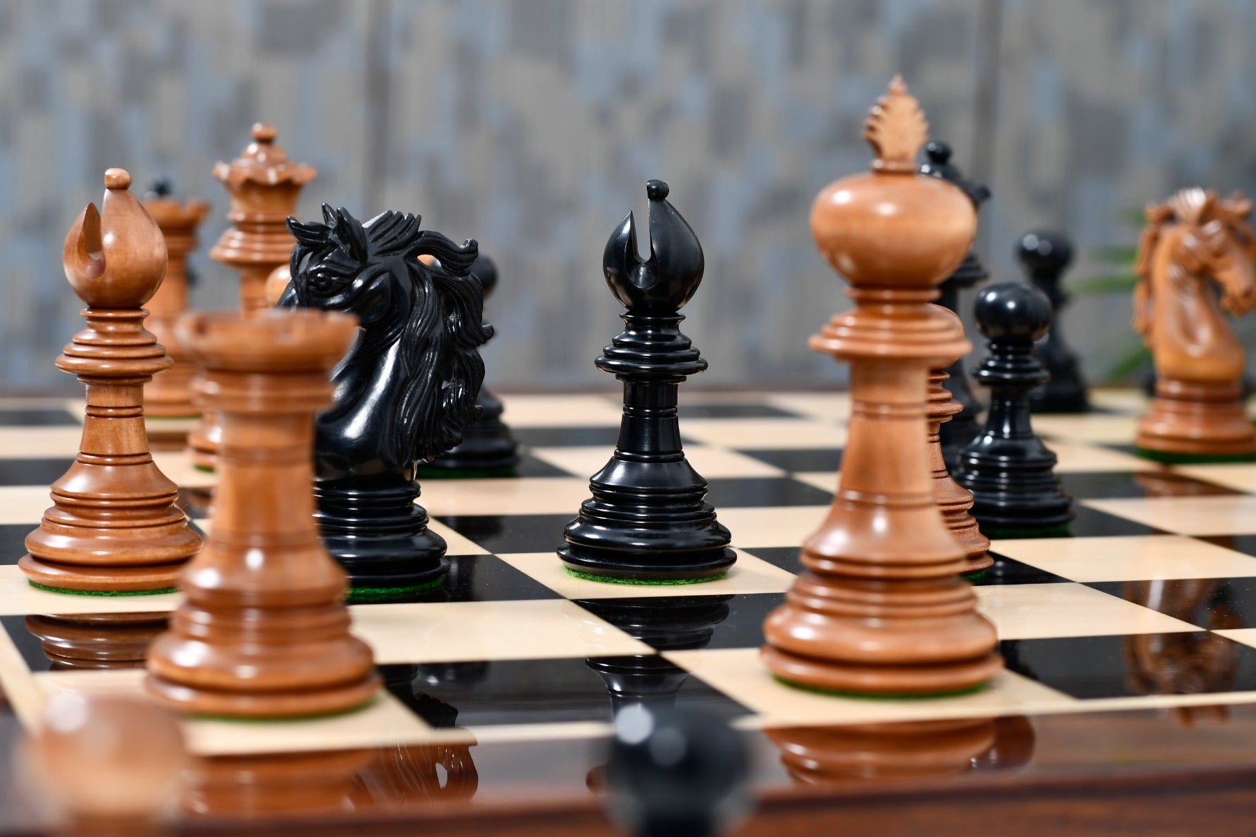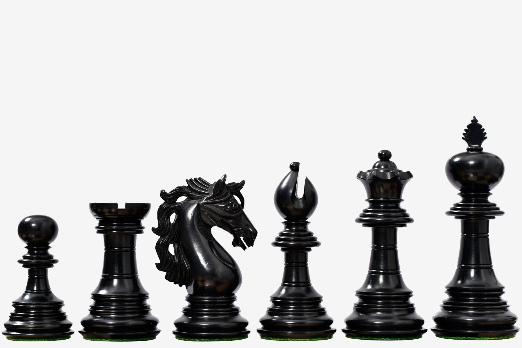 Design & Quality: Appropriately weighted these pieces are very stable on board and a pleasure to touch and feel. Each piece is meticulously carved and buff polished by hand to give it a rich and long lasting shine. The design, quality and craftsmanship of these chess pieces is unmatched.