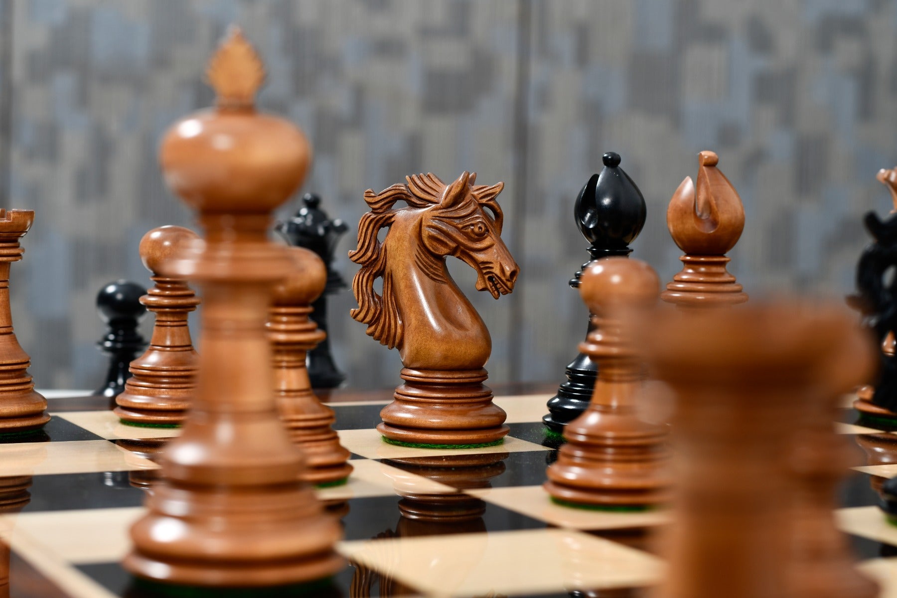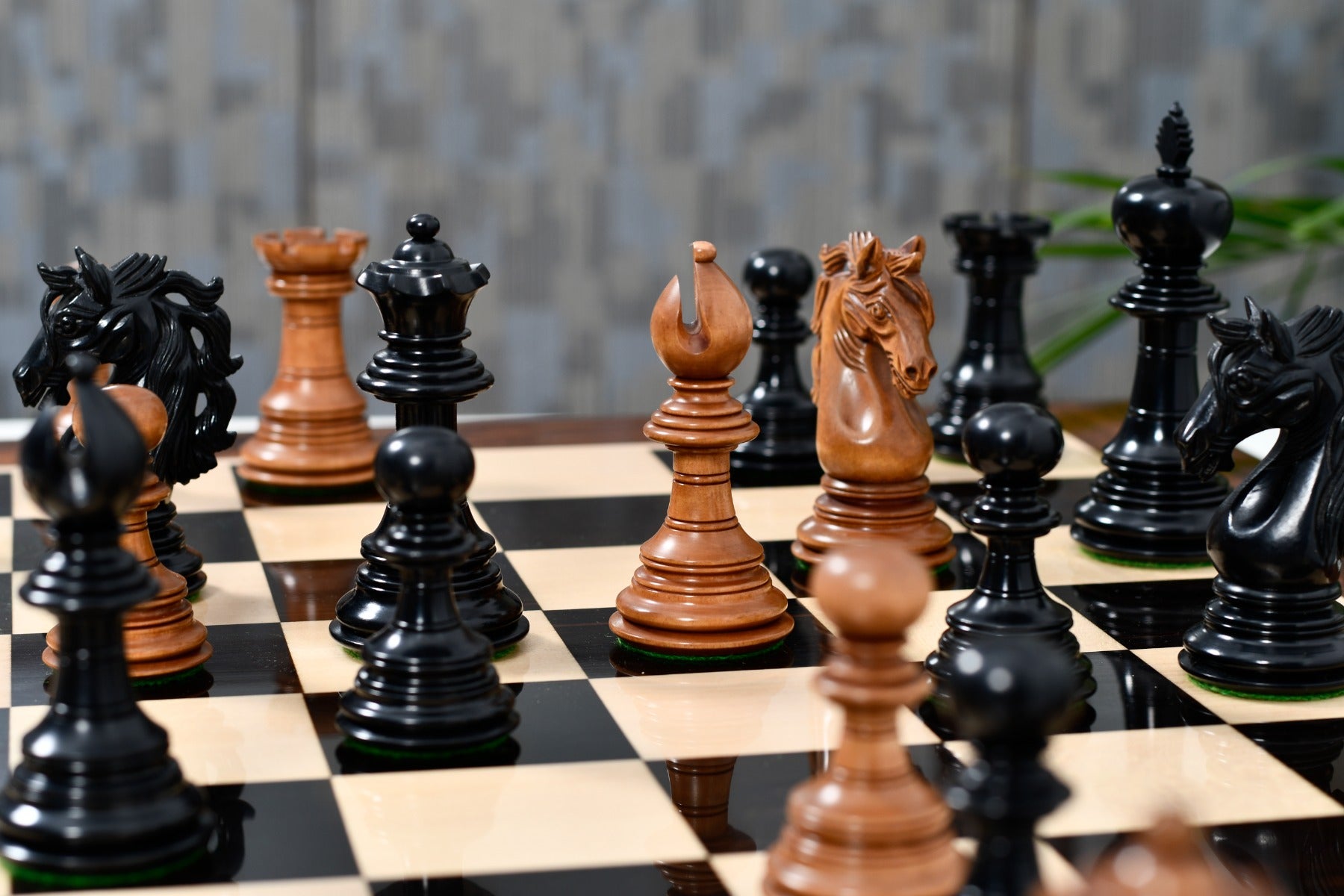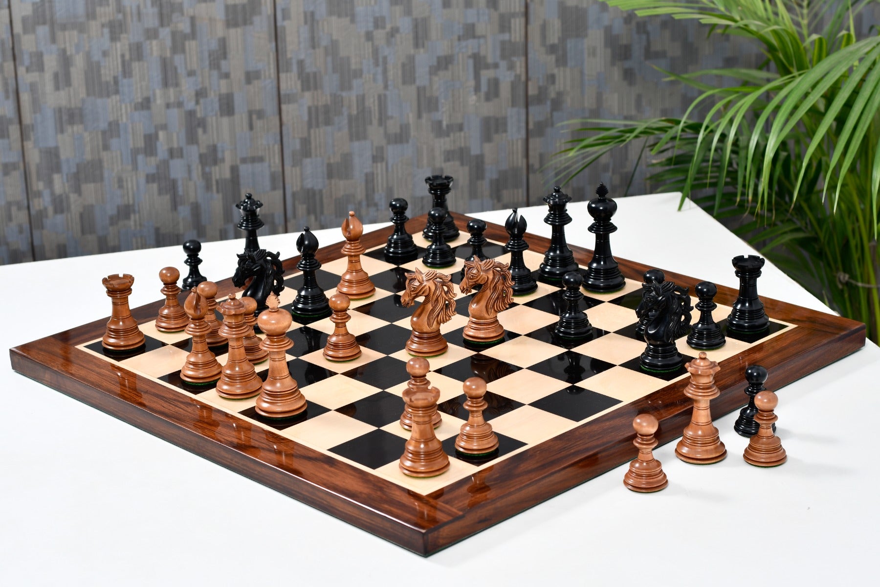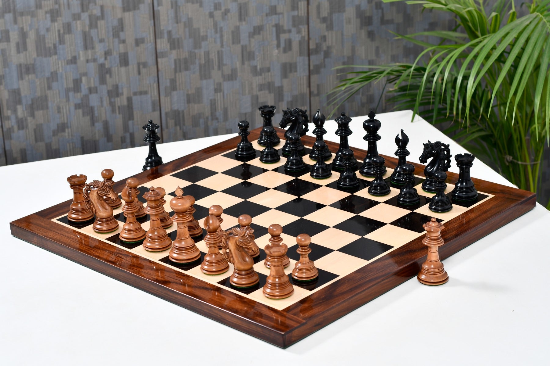 Design & Quality: Appropriately weighted these pieces are very stable on board and a pleasure to touch and feel. Each piece is meticulously carved and buff polished by hand to give it a rich and long lasting shine. The design, quality and craftsmanship of these chess pieces is unmatched.