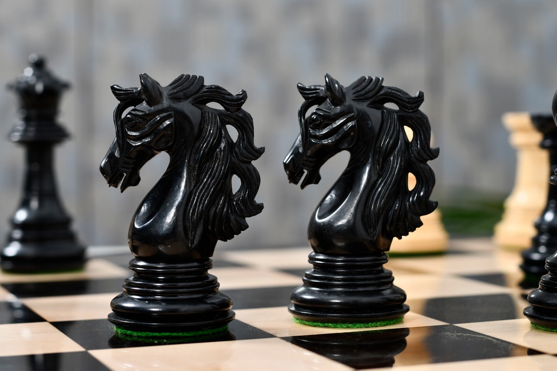 Design & Quality: Appropriately weighted these pieces are very stable on board and a pleasure to touch and feel. Each piece is meticulously carved and buff polished by hand to give it a rich and long lasting shine. The design, quality and craftsmanship of these chess pieces is unmatched.