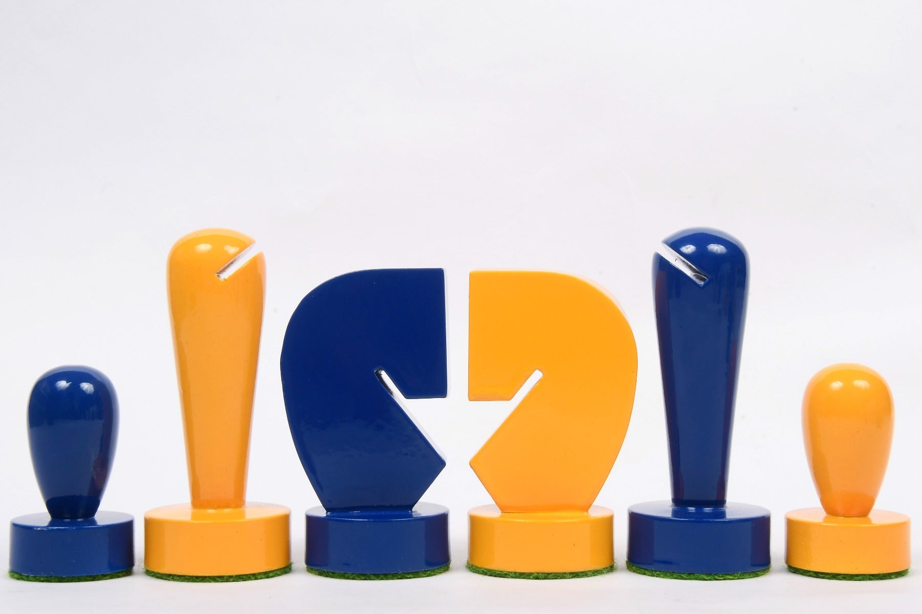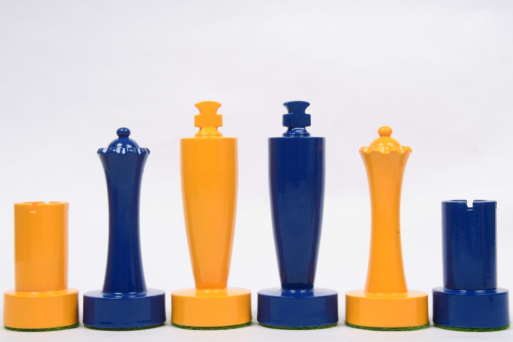 Berliner Series Modern Minimalist Chess Pieces in Blue and Yellow Painted Box Wood - 3.7" King