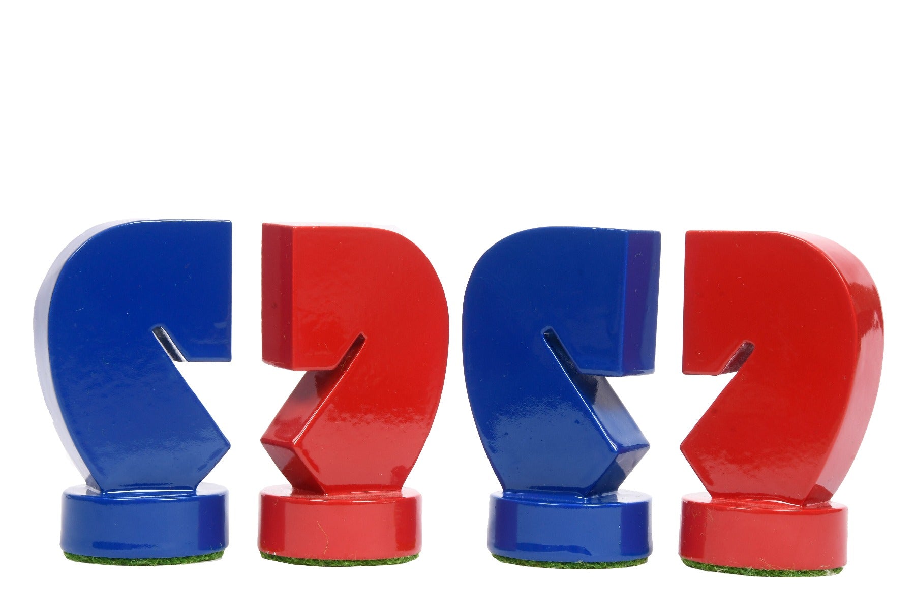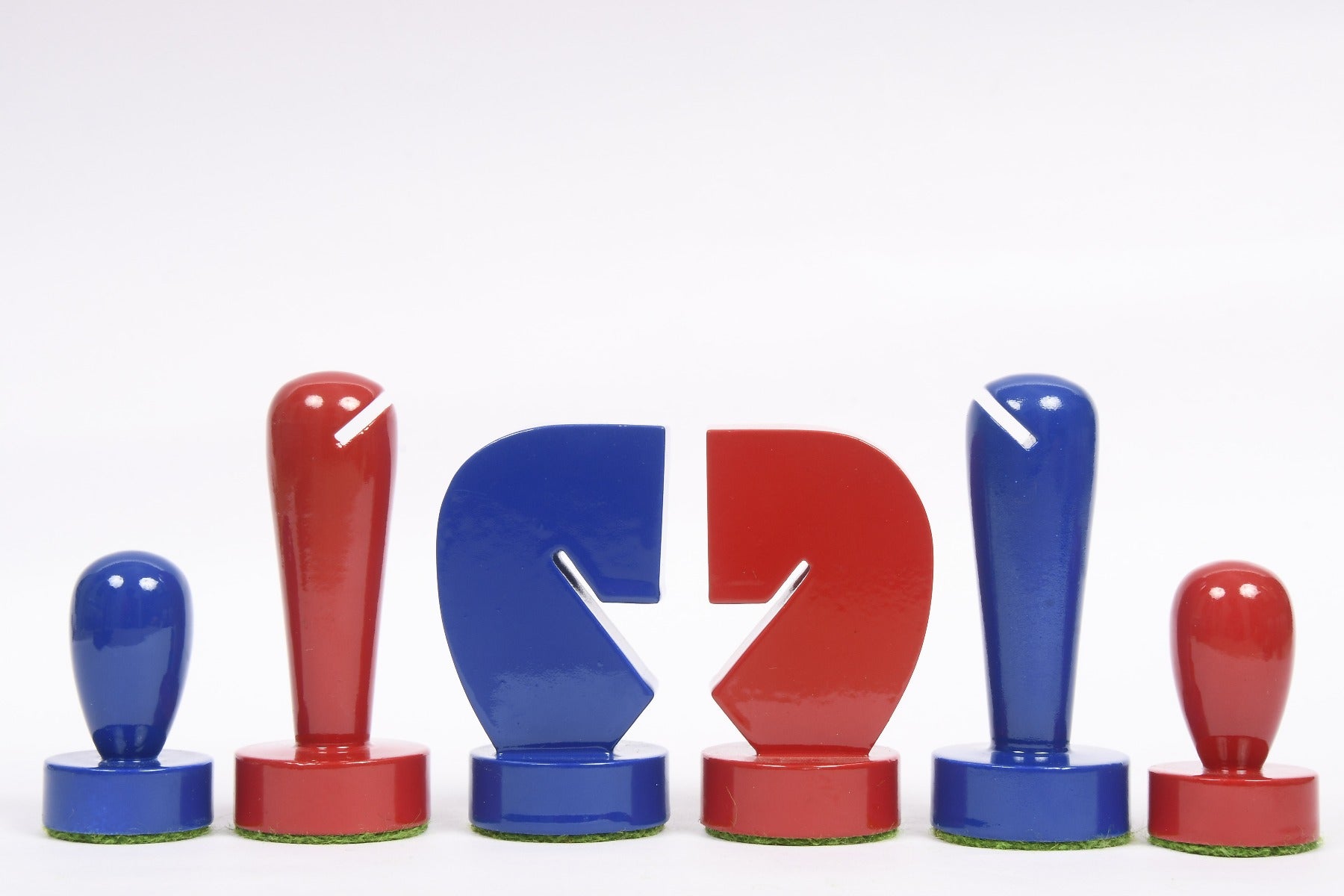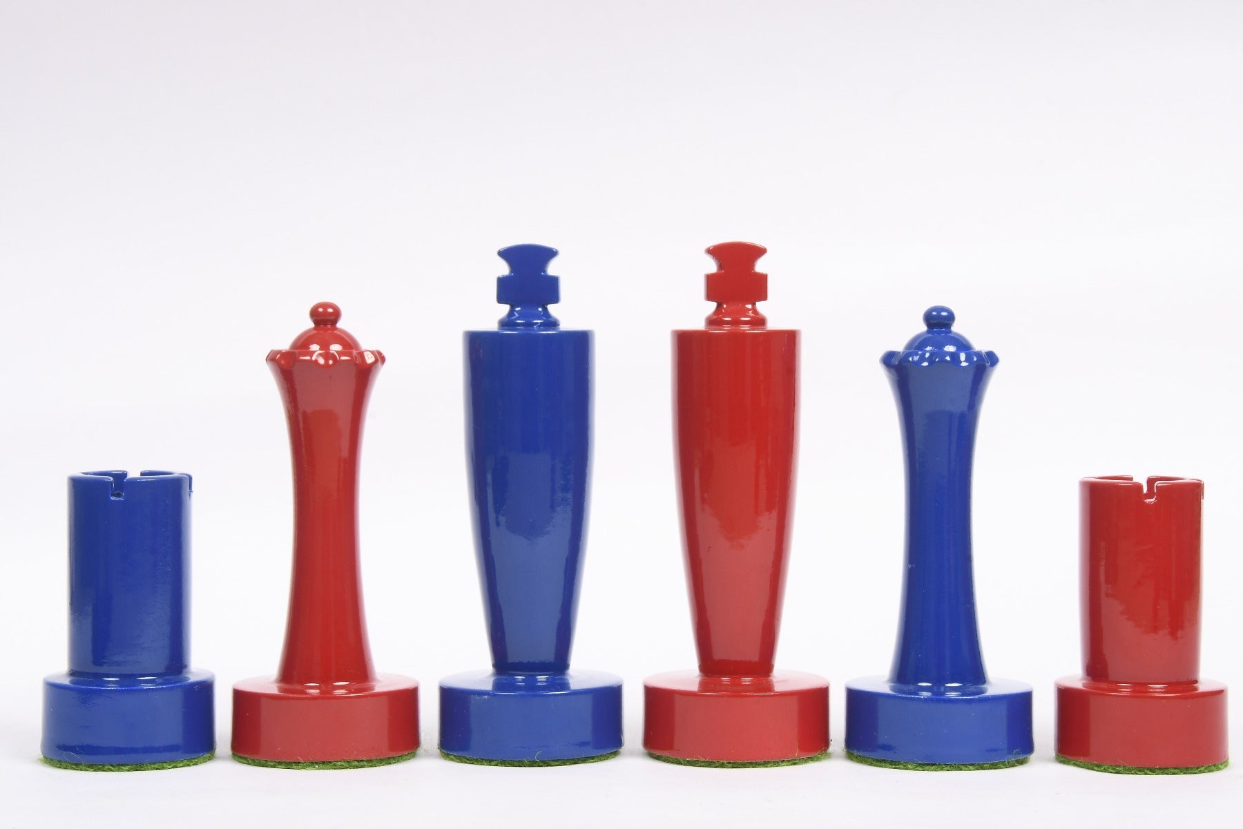 Berliner Series Modern Minimalist Chess Pieces in Red and Blue Painted Box Wood - 3.7" King
