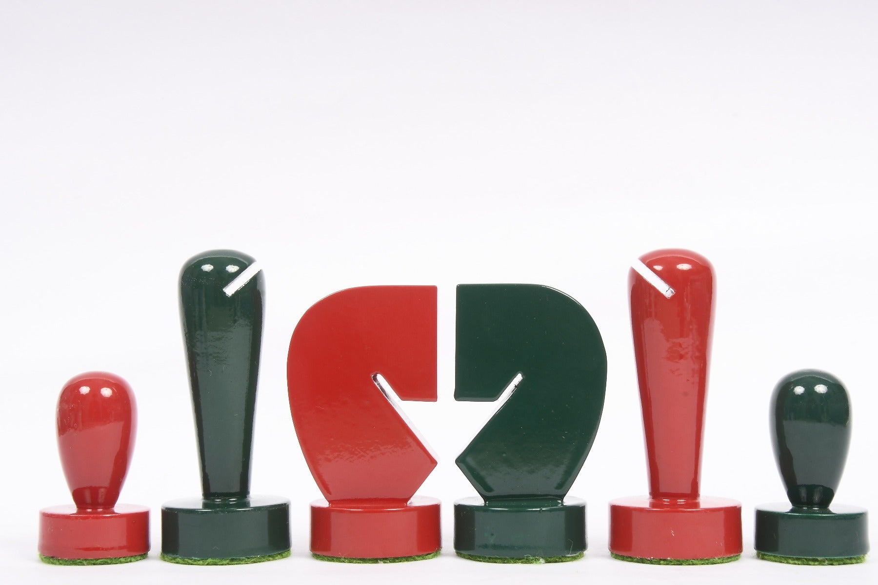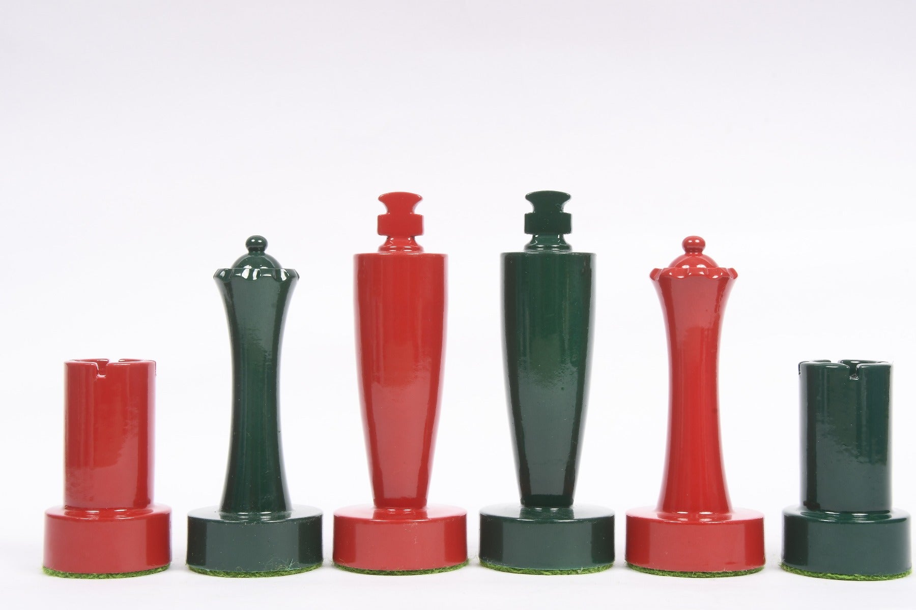 Berliner Series Modern Minimalist Chess Pieces in Red and Green Painted Box Wood - 3.7" King