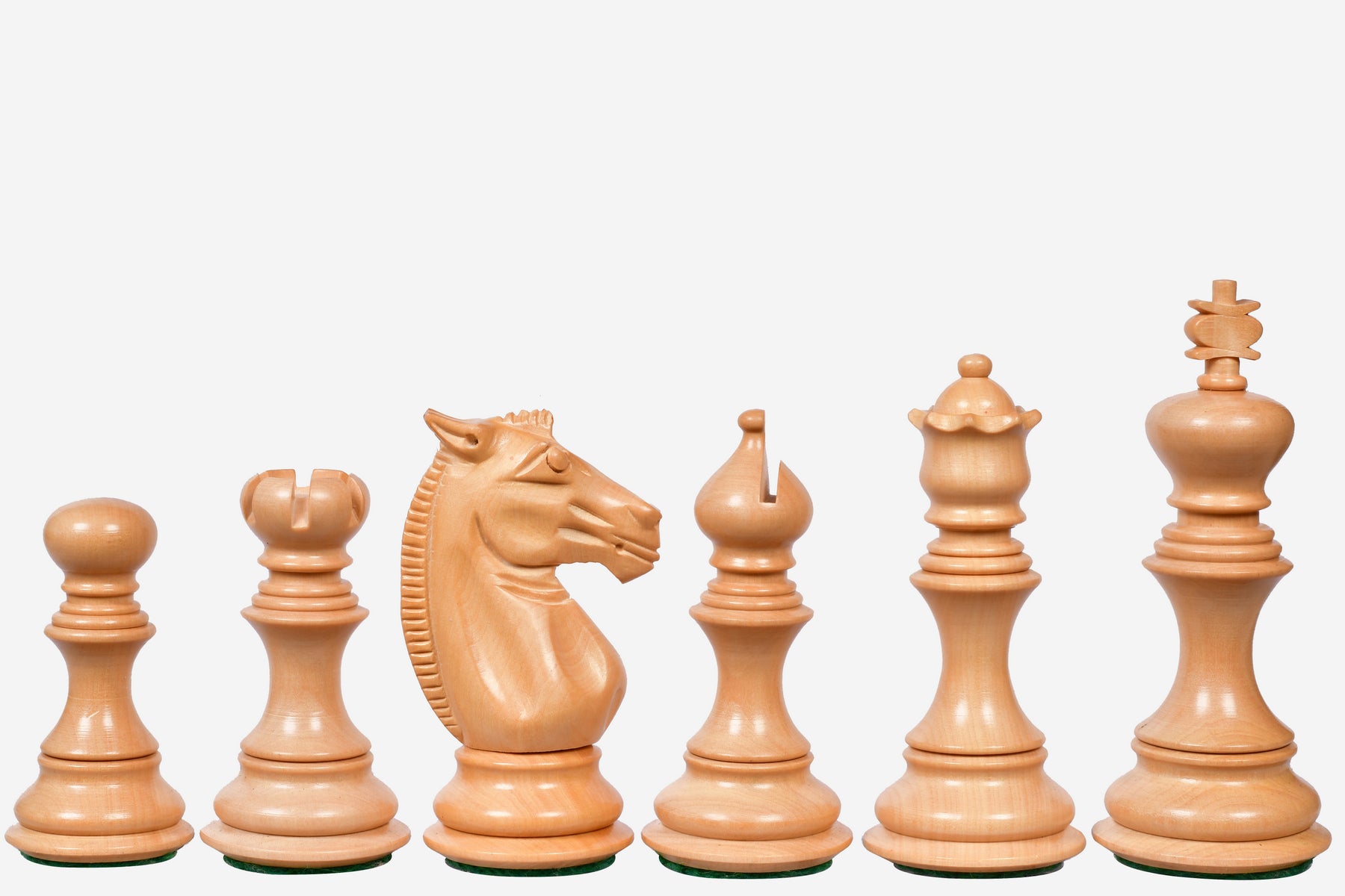 Features: The Staunton Series weighted chess pieces offers a 3.1" King with a diameter of 1.3" and all chess pieces are Weighted by adding a stud of iron within the base. Each of the chess pieces have green felt on their bases. The dark chess pieces are made of Ebony wood and the lighter chess pieces are made of Boxwood.