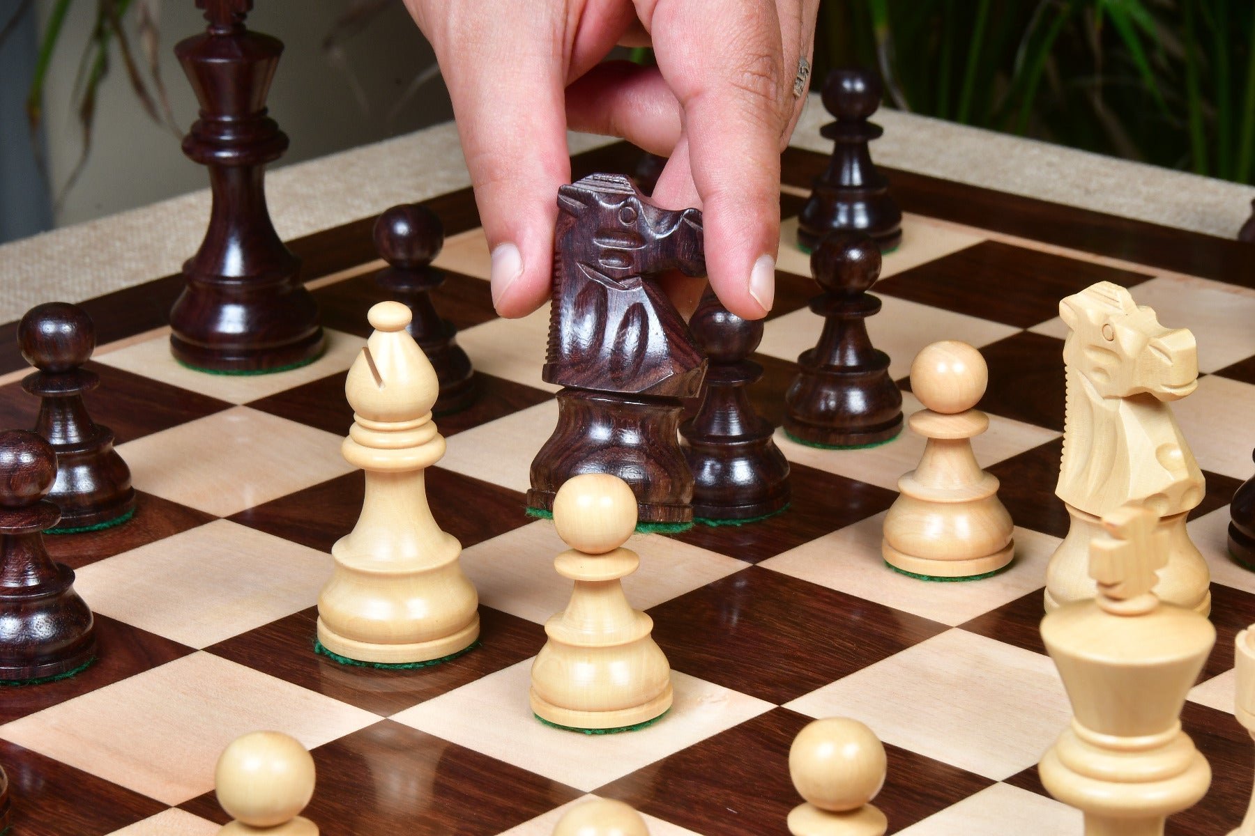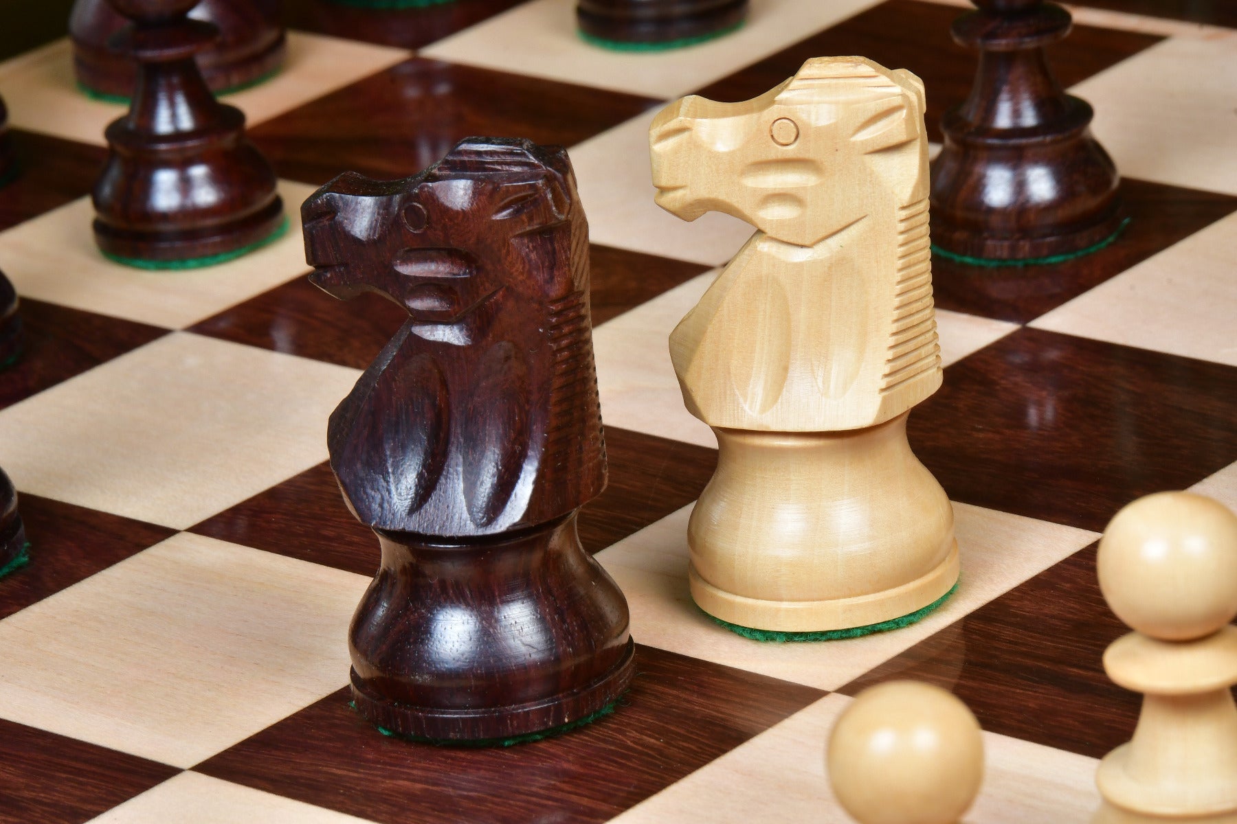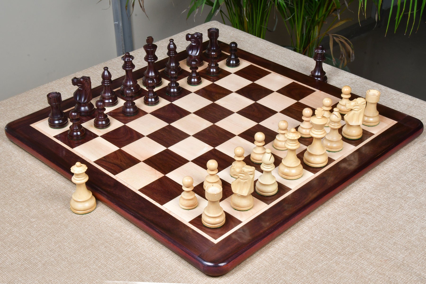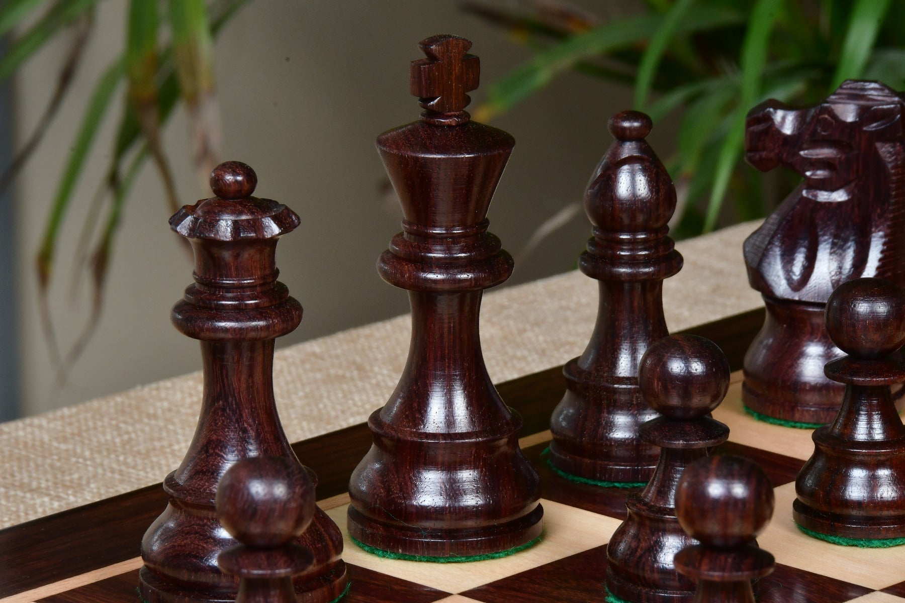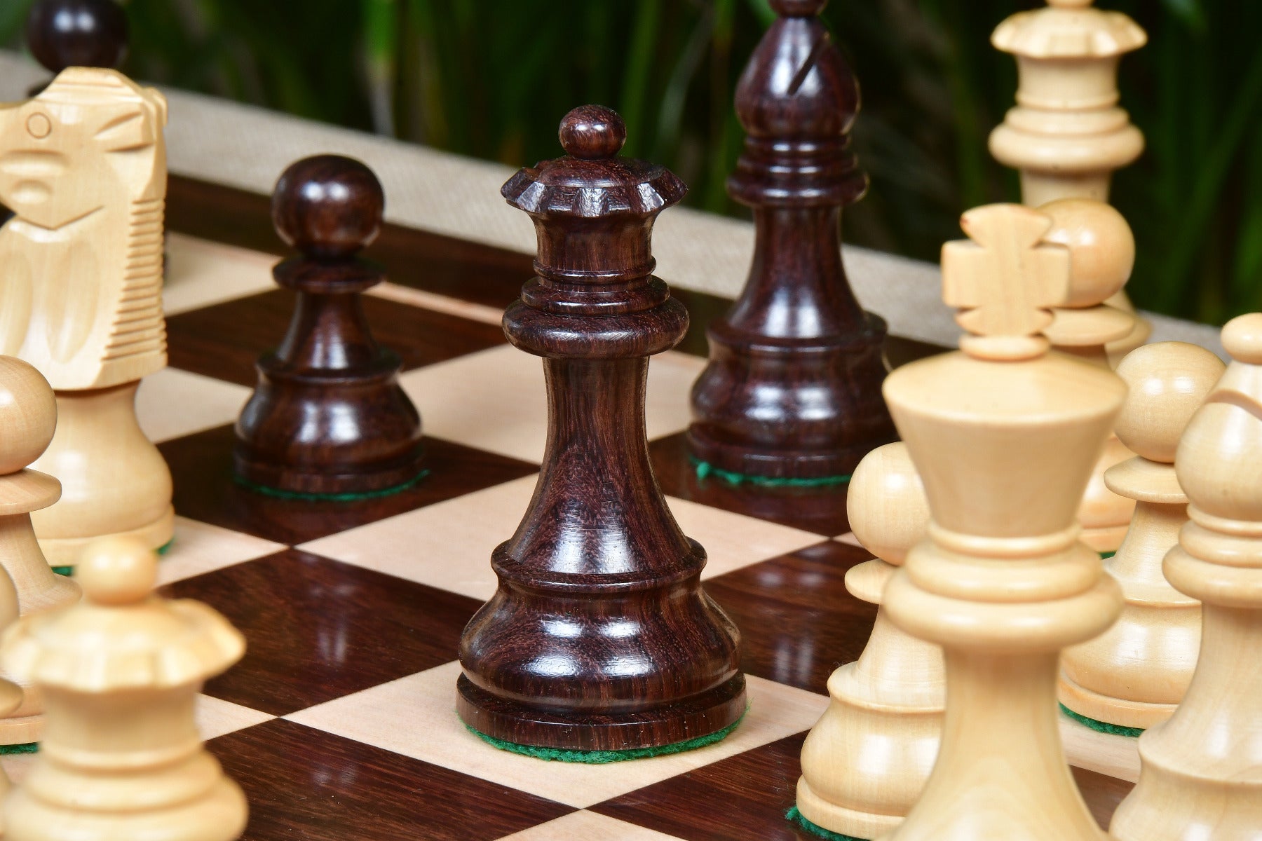 Reproduced French Lardy Exclusive Tournament Size Weighted Wooden Chess Pieces in Indian Rosewood / Box wood - 3.75"