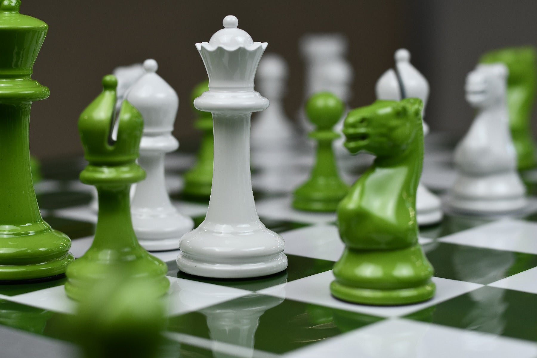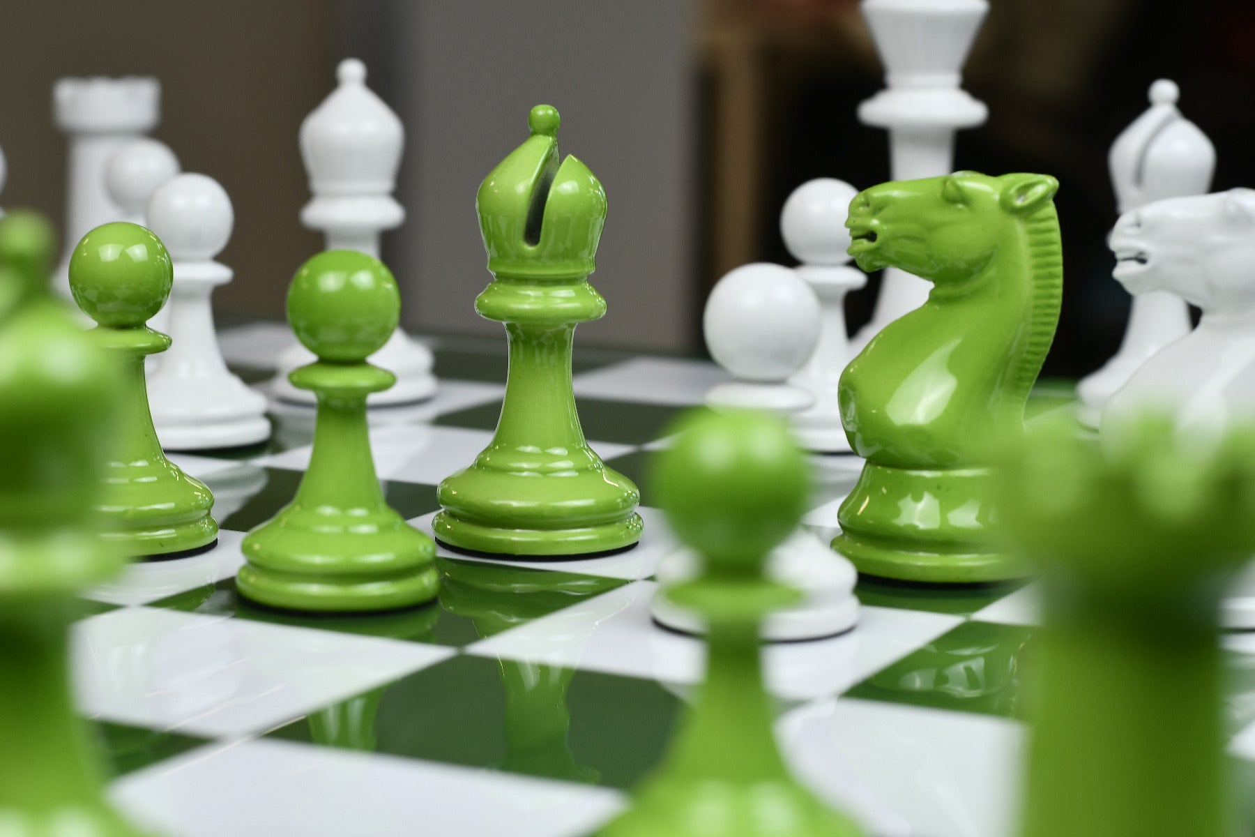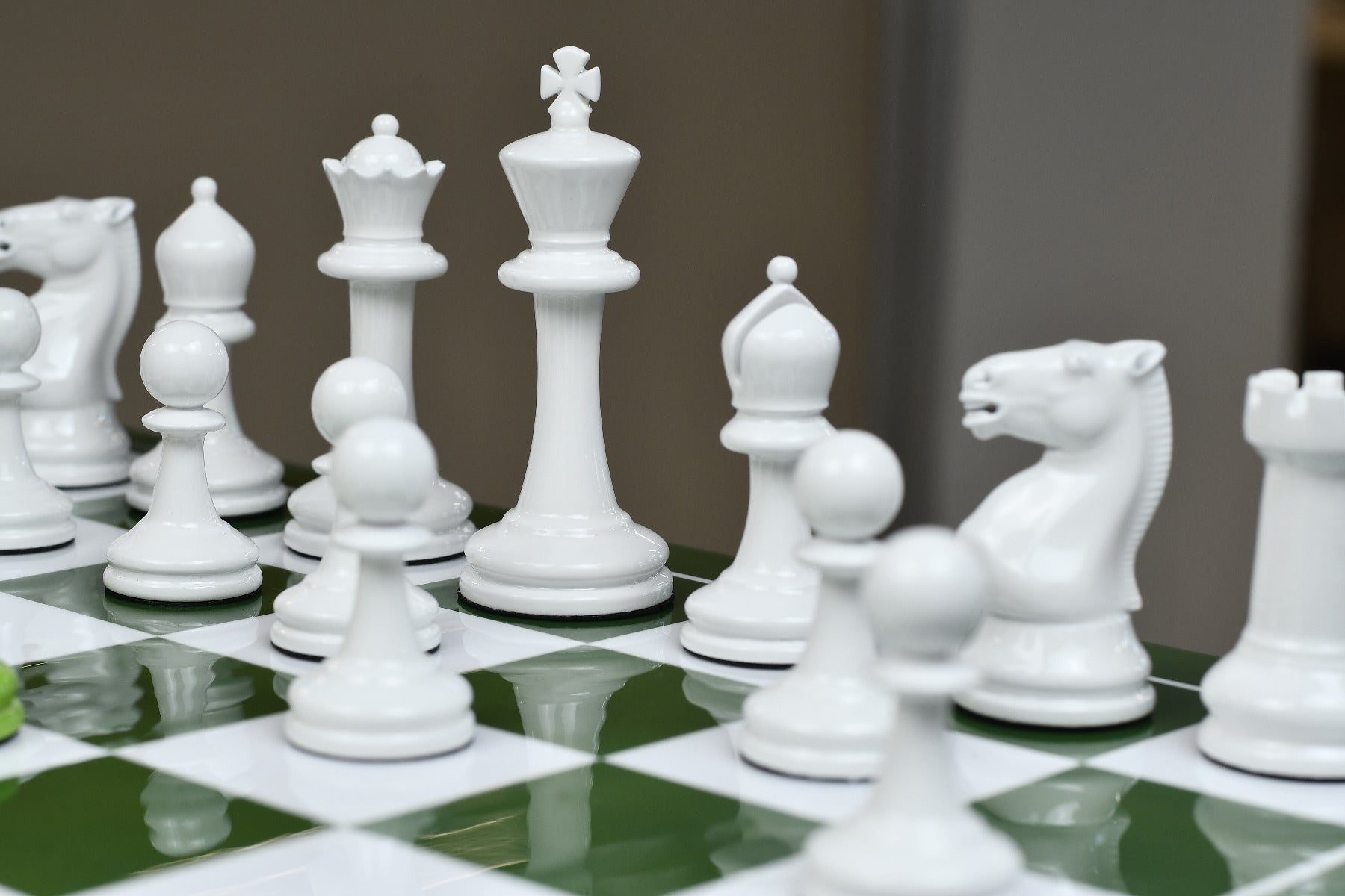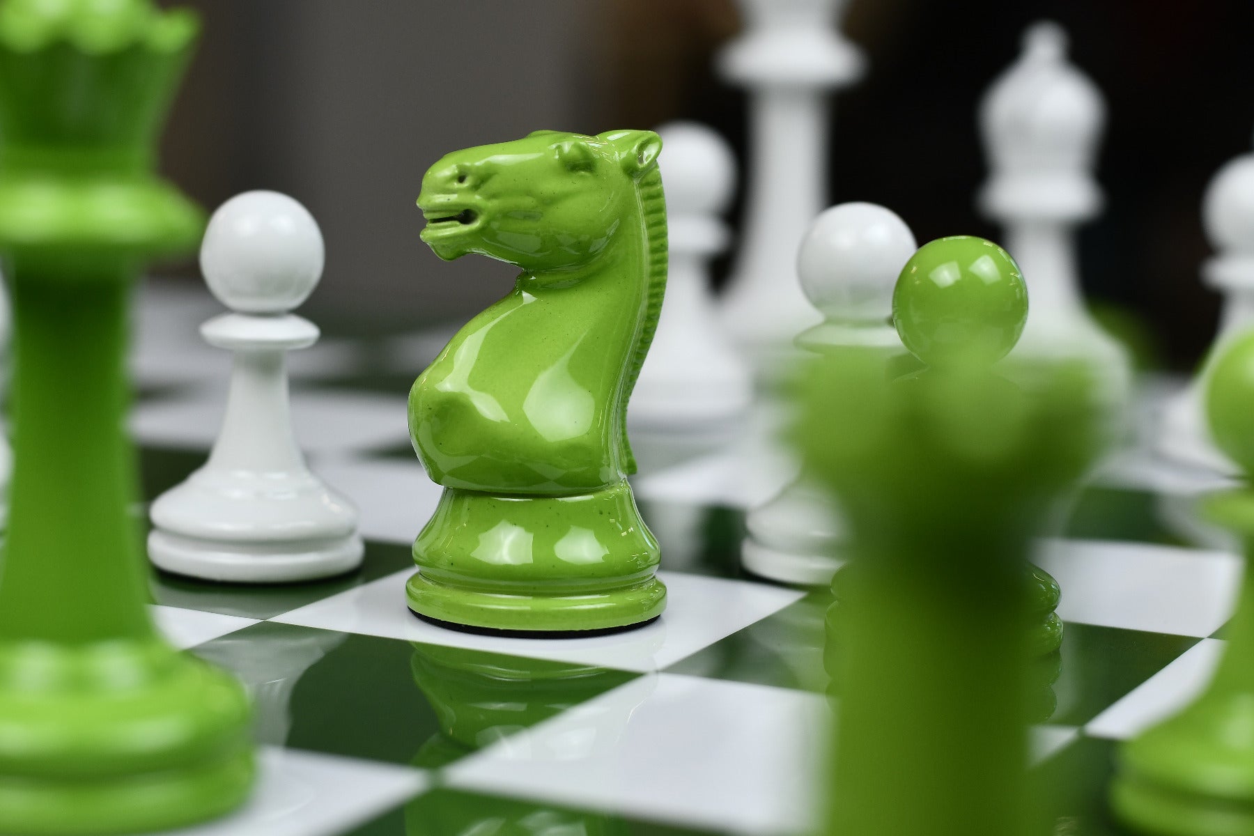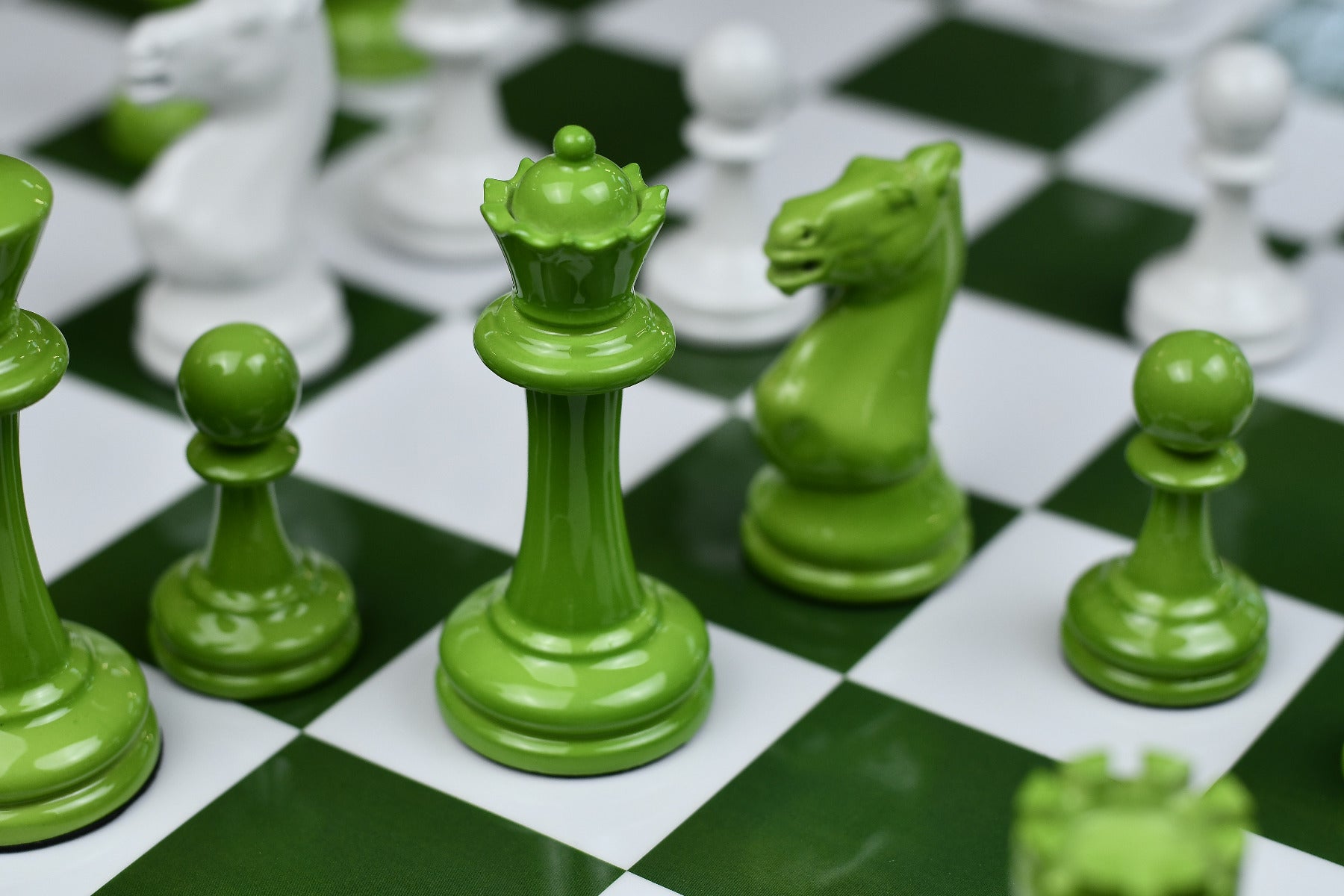 Shamrock Chess Set Painted in Vivid Irish Green & White Plastic - 3.75" King with Board