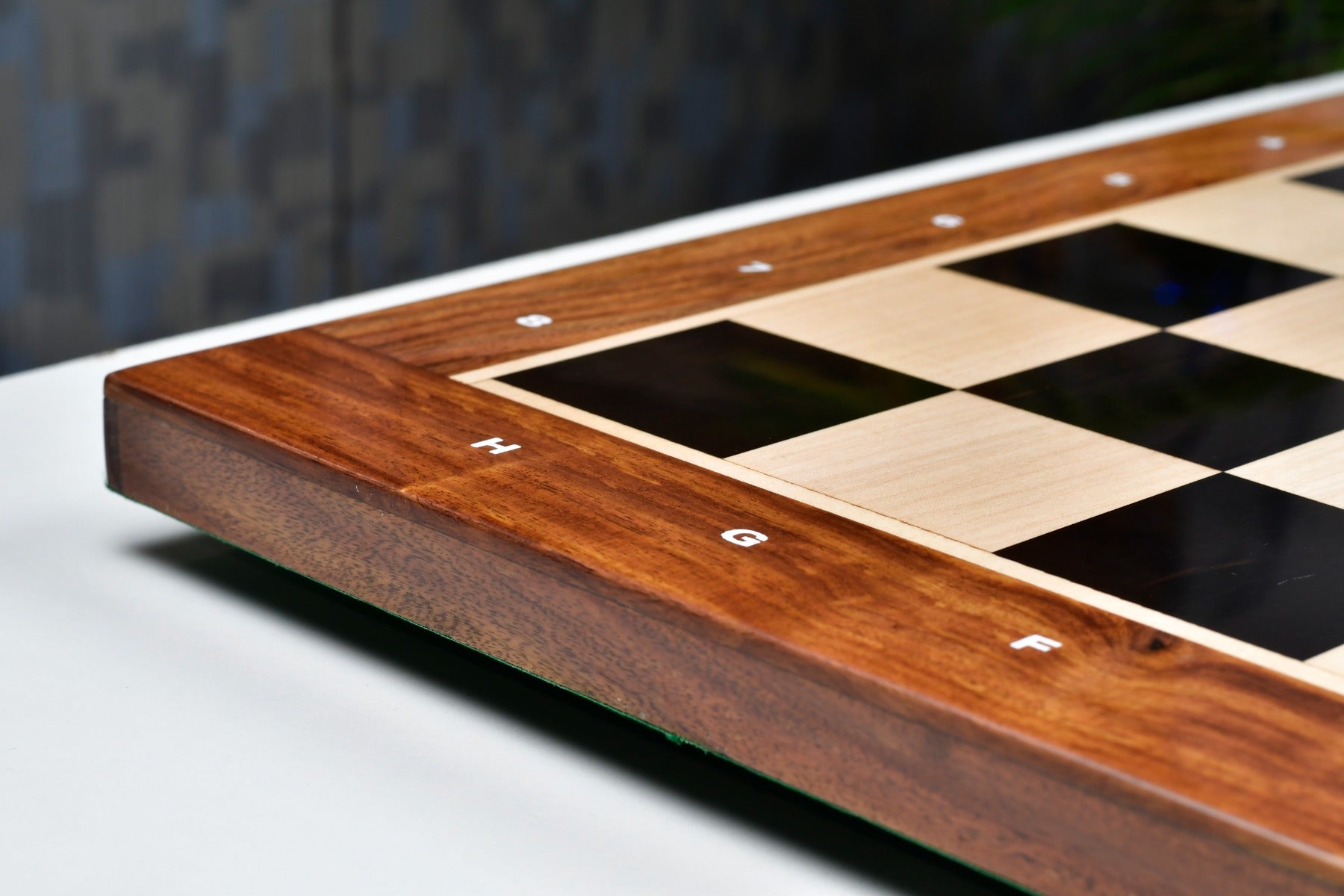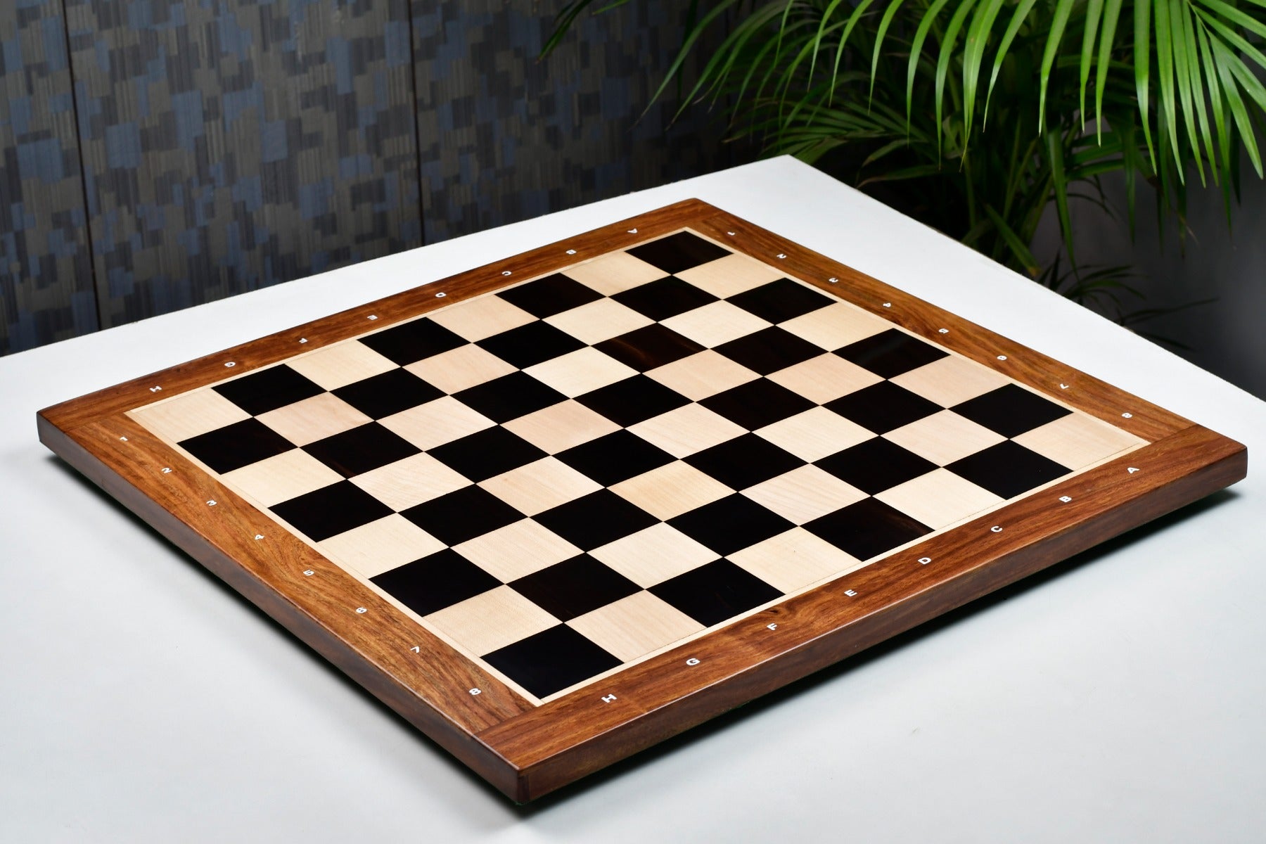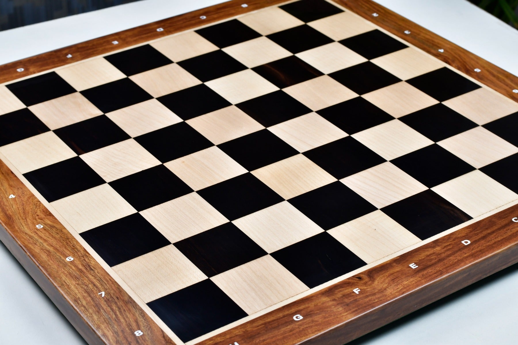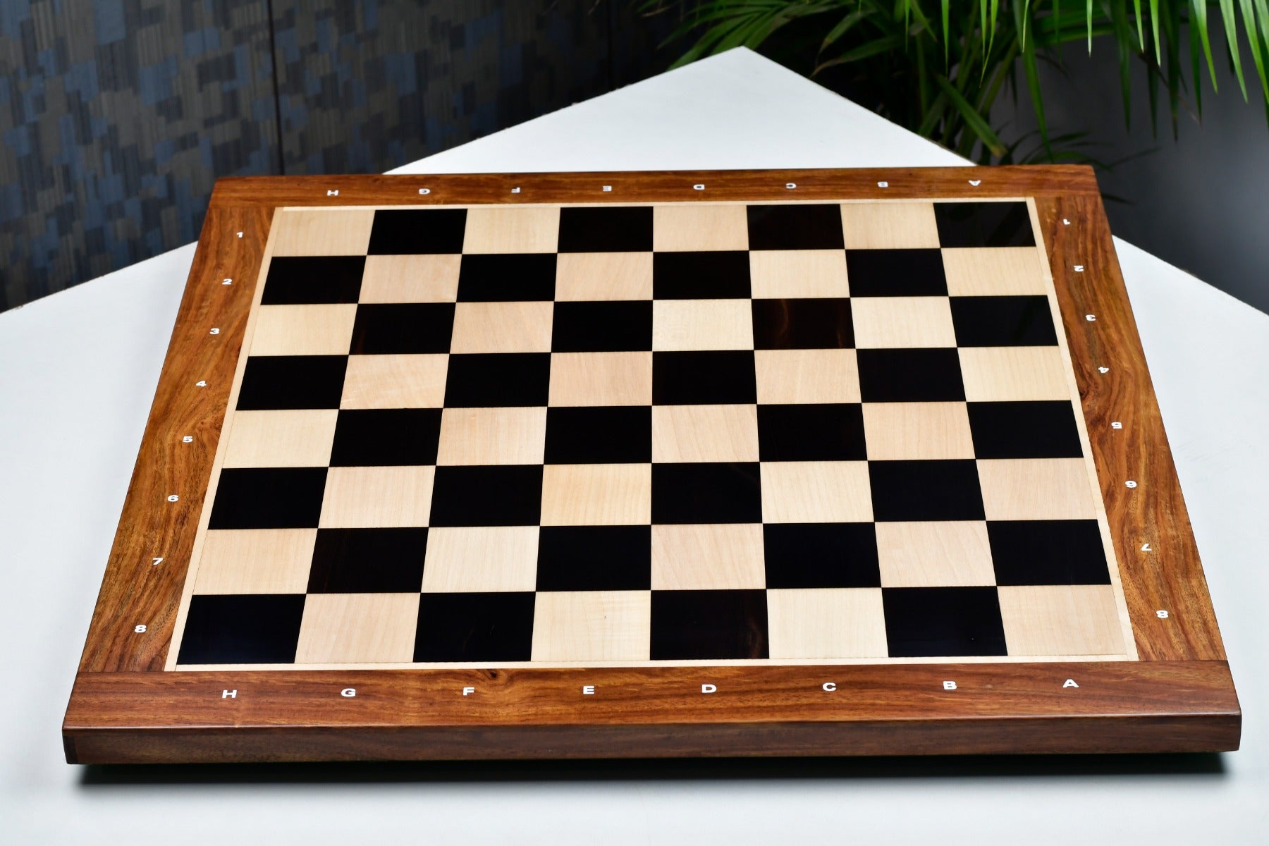 Solid Wooden Indian Notation Chess Board in Genuine Ebony Wood & Maple Wood with Sheesham Wood Border 23" - 60 mm Square