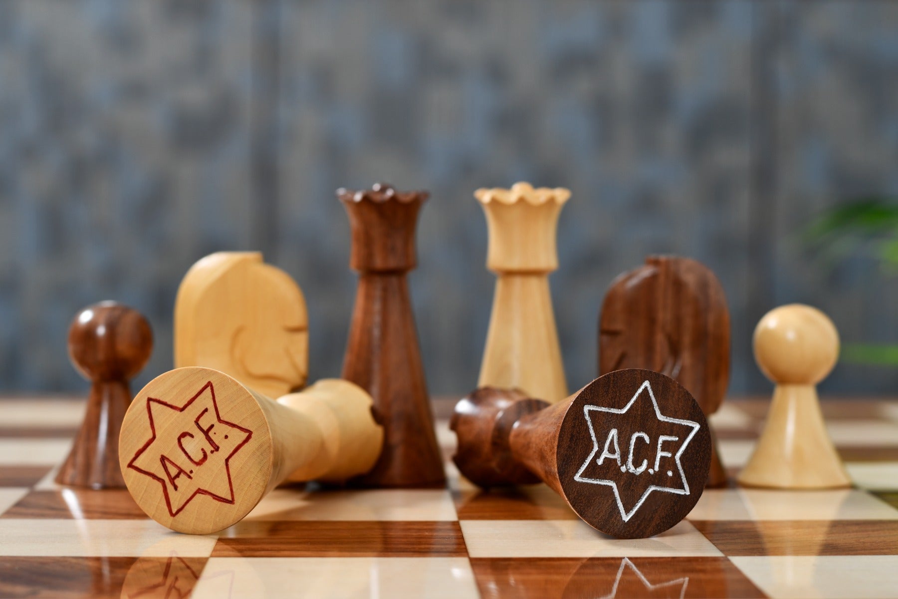 The Australian War Memorial Reproduced Chess Pieces by ACF in Sheesham & Natural Boxwood / King Base Stamping - 3.5" King -Shop Now