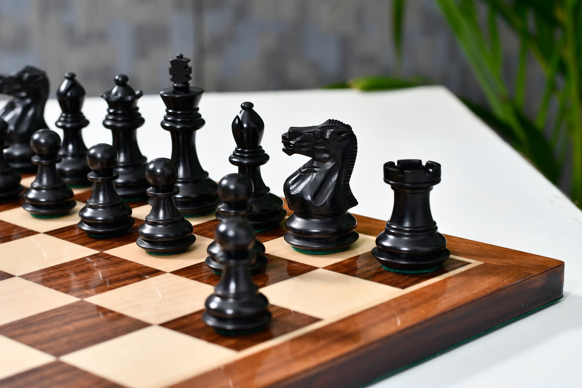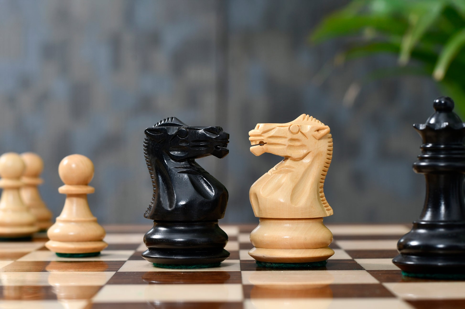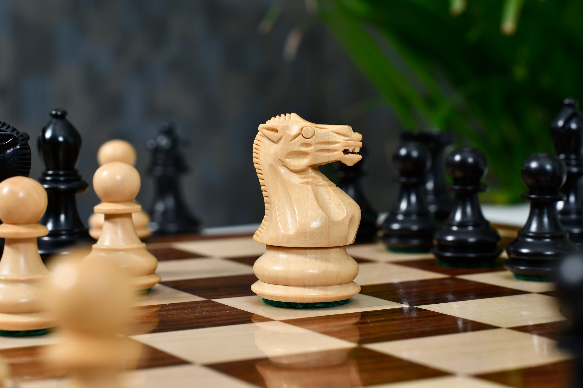 The Collector Series Handcarved Staunton Chess Pieces in Ebonized Boxwood & Natural Boxwood - 2.6" King