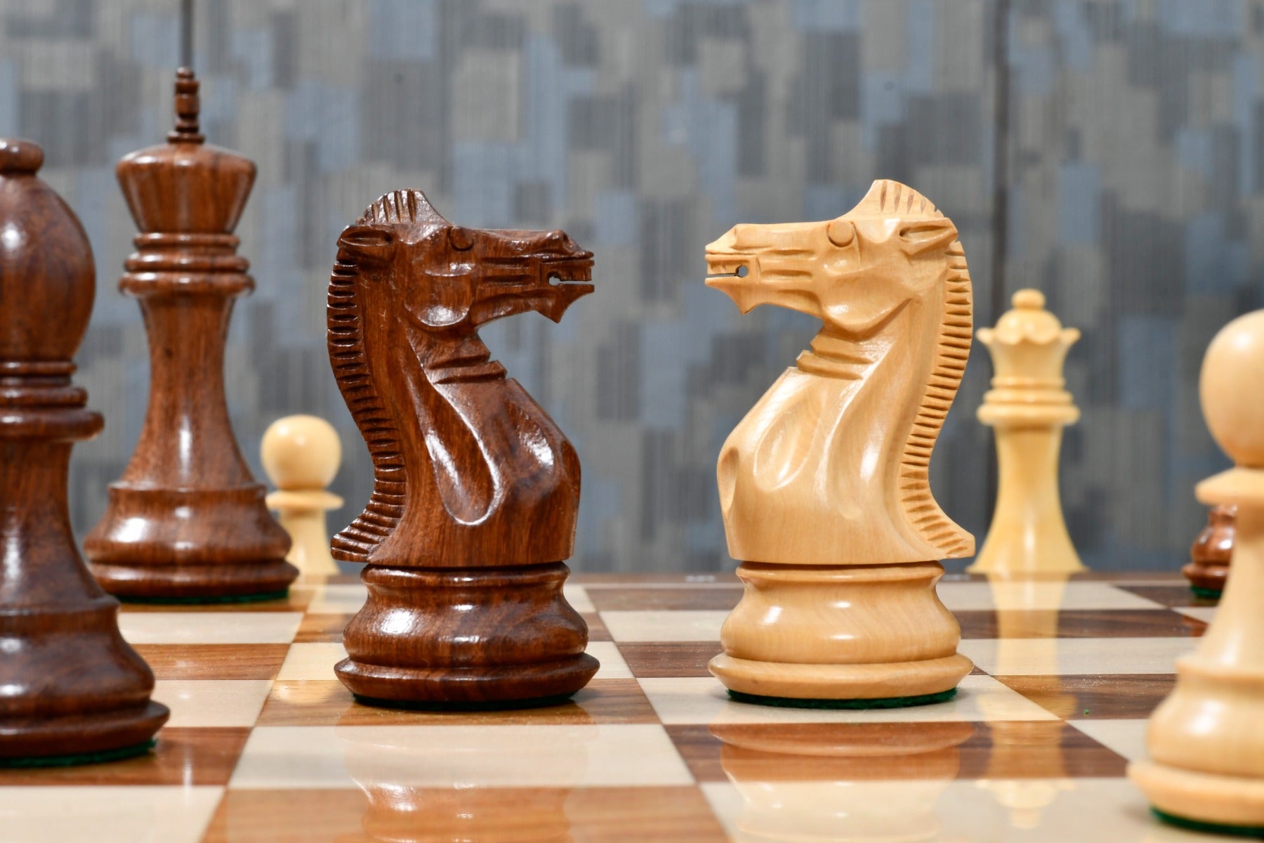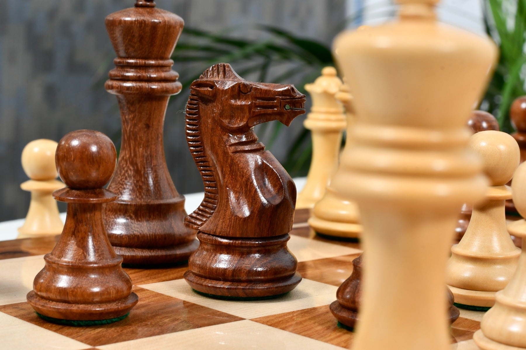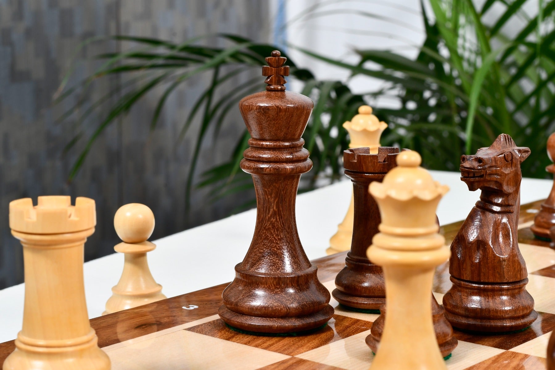 The Honour of Staunton (HOS) Series Weighted Chess Pieces in Sheesham & Natural Boxwood - 4.0" King