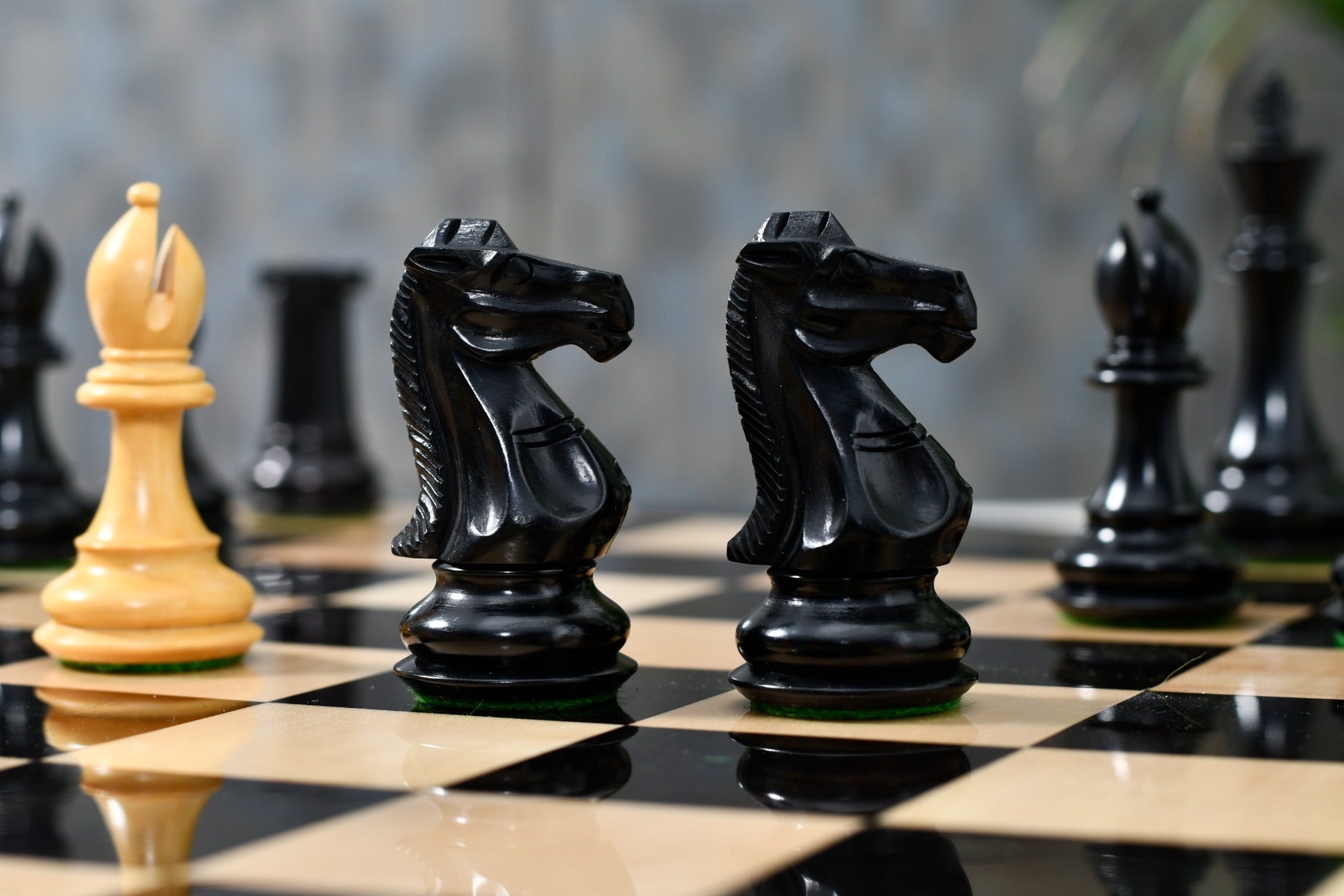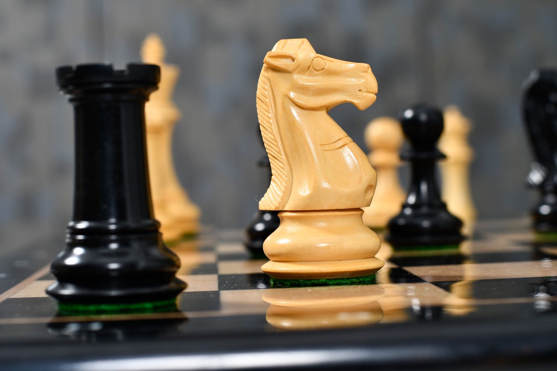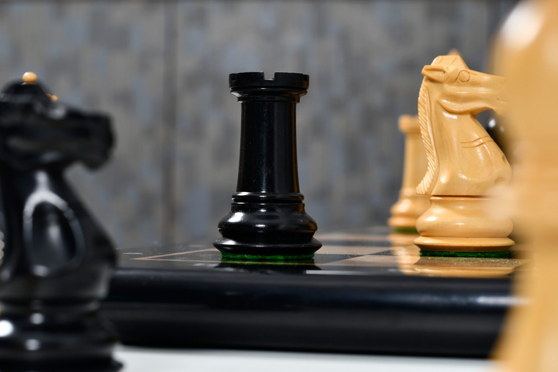 The Old Romeo Staunton Series Weighted Chess Pieces in Ebony & Box Wood - 3.8" King