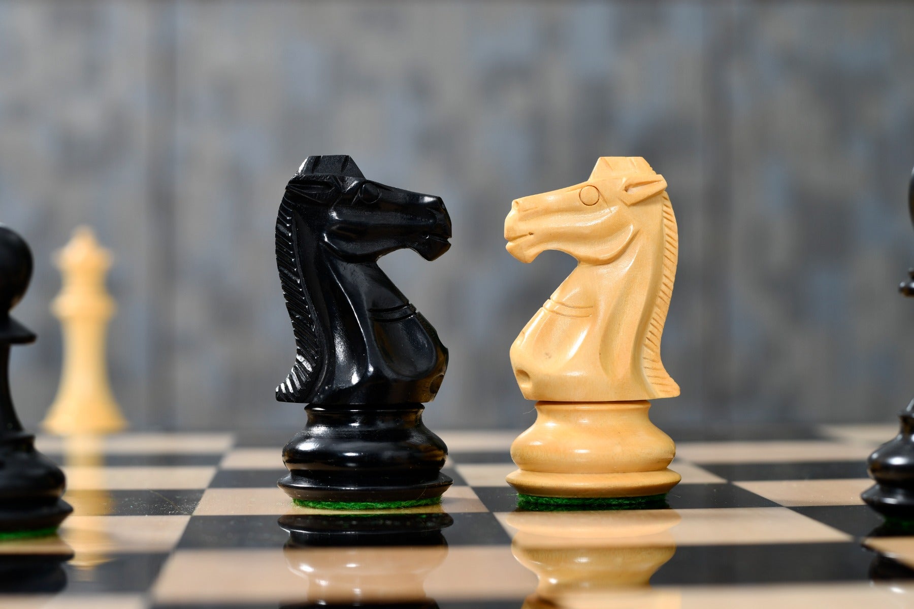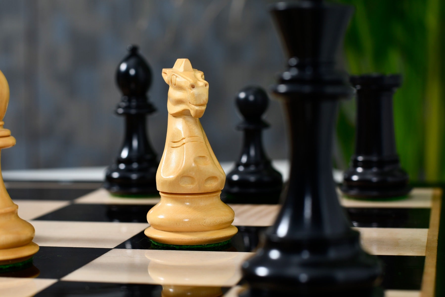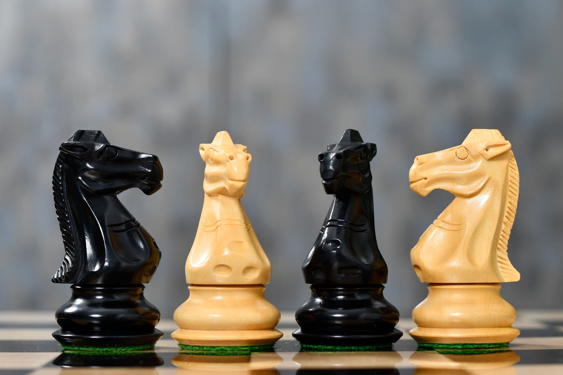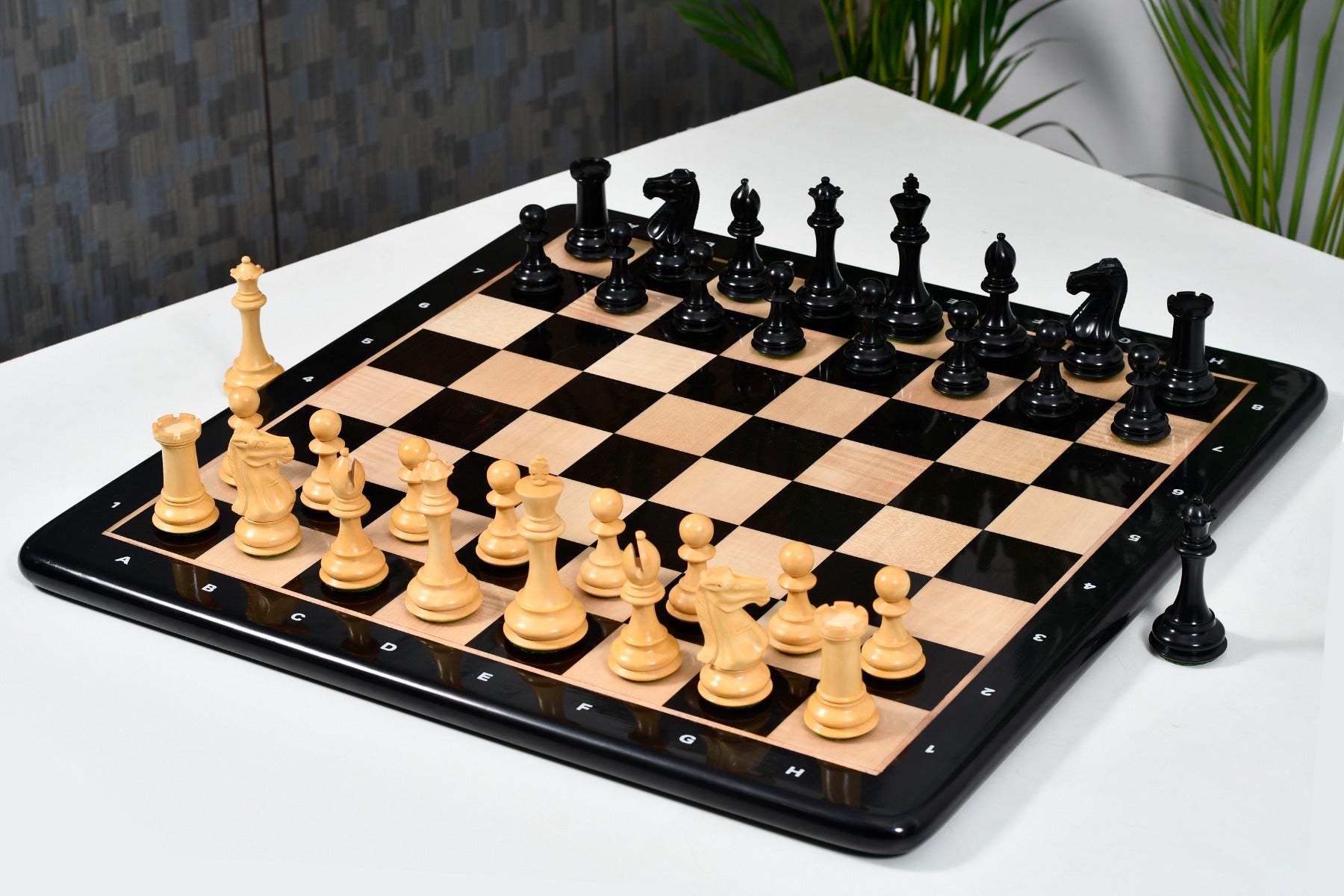 The Old Romeo Staunton Series Weighted Chess Pieces in Ebony & Box Wood - 3.8" King