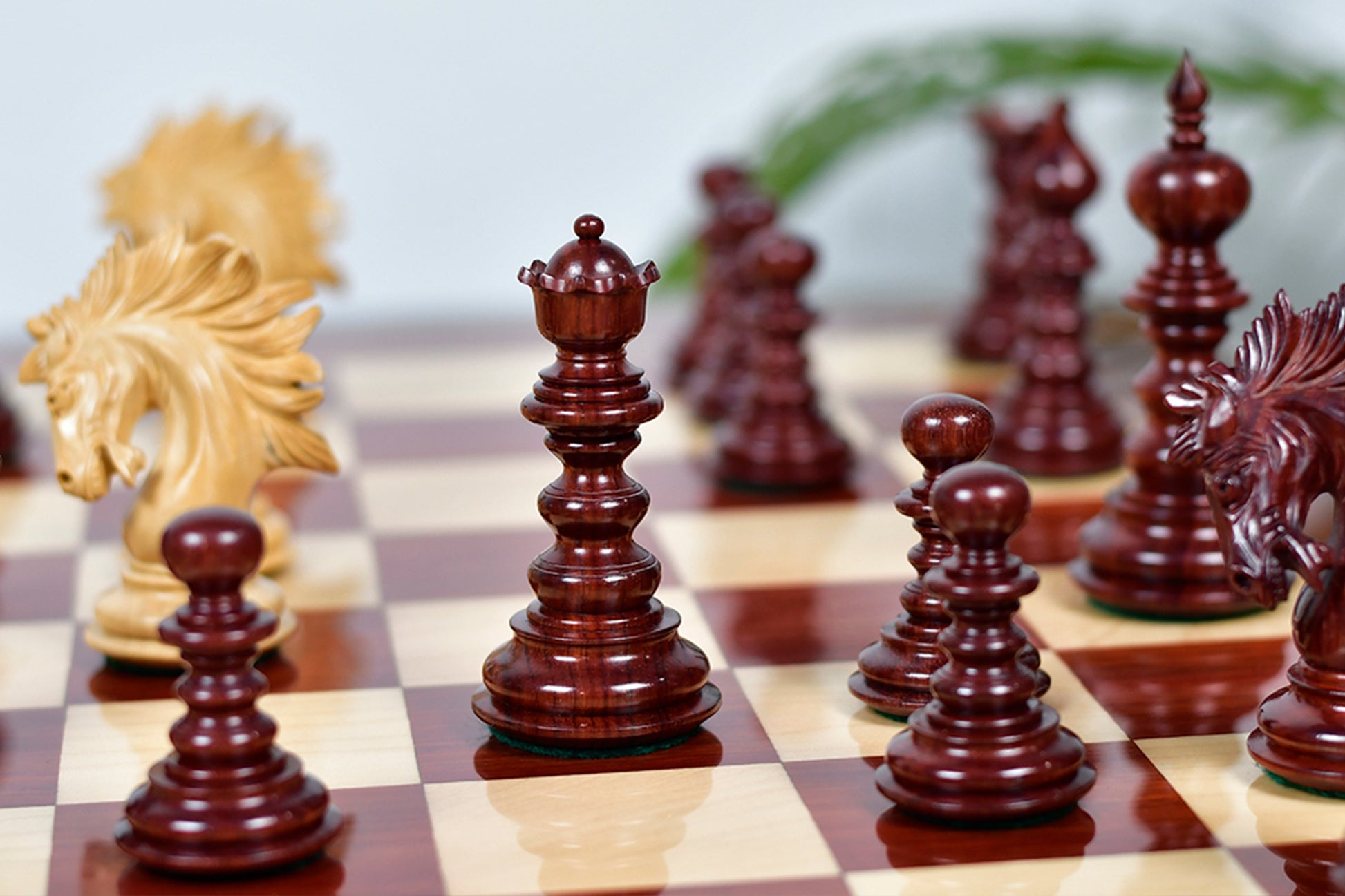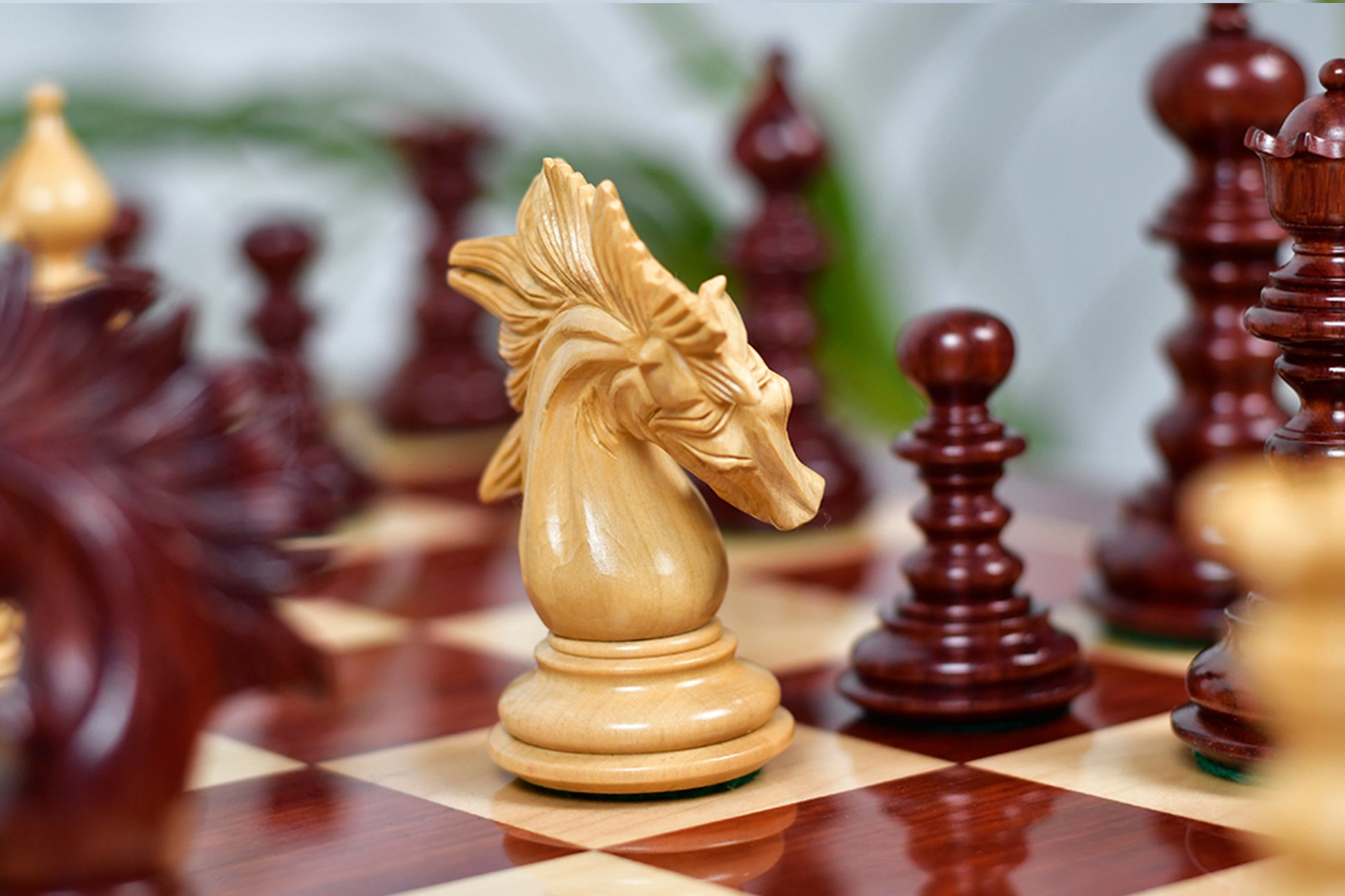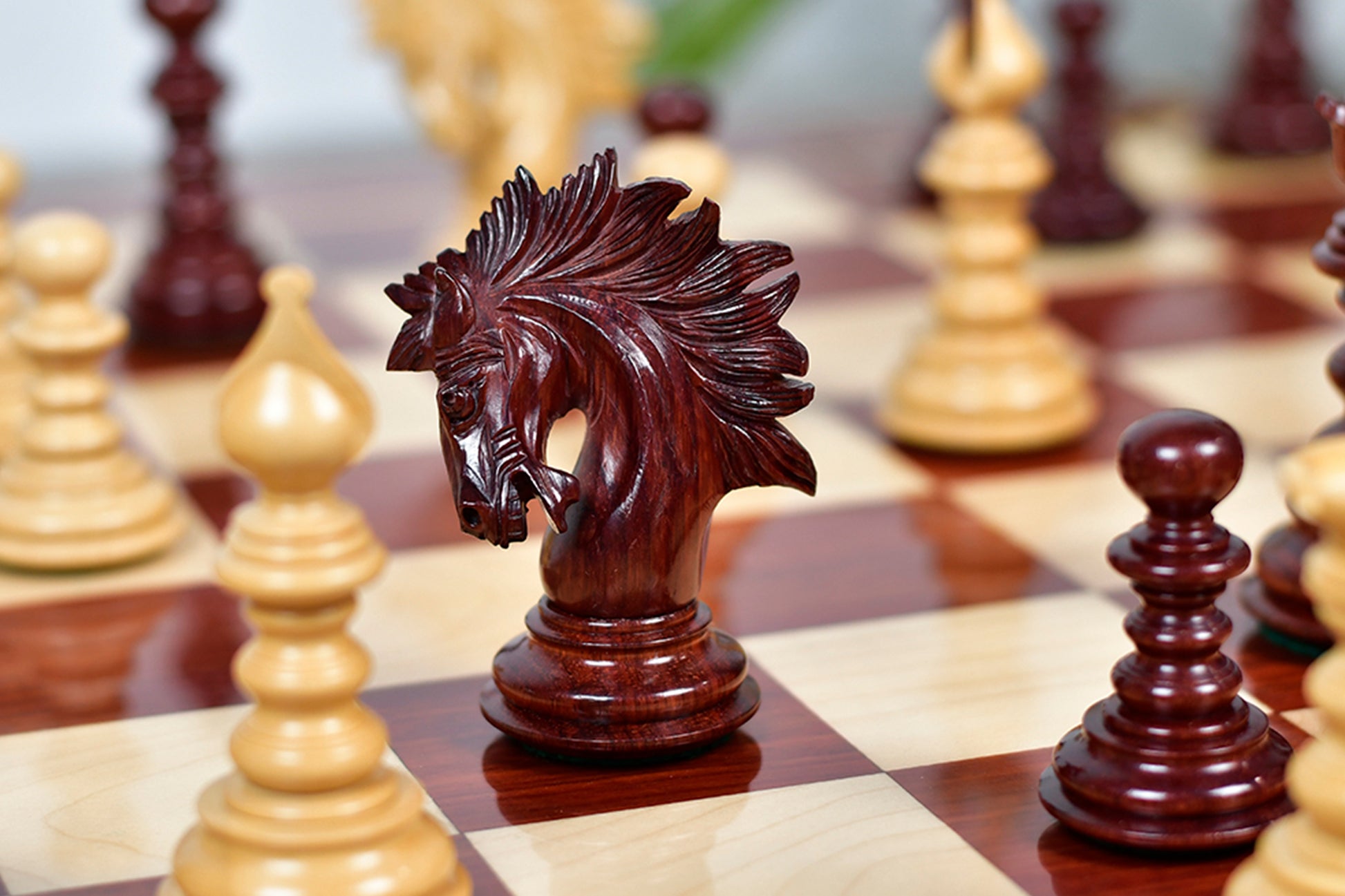 The St. Petersburg Luxury Artisan Series Chess Pieces in Bud Rosewood / Boxwood - 4.3" King with Storage Box