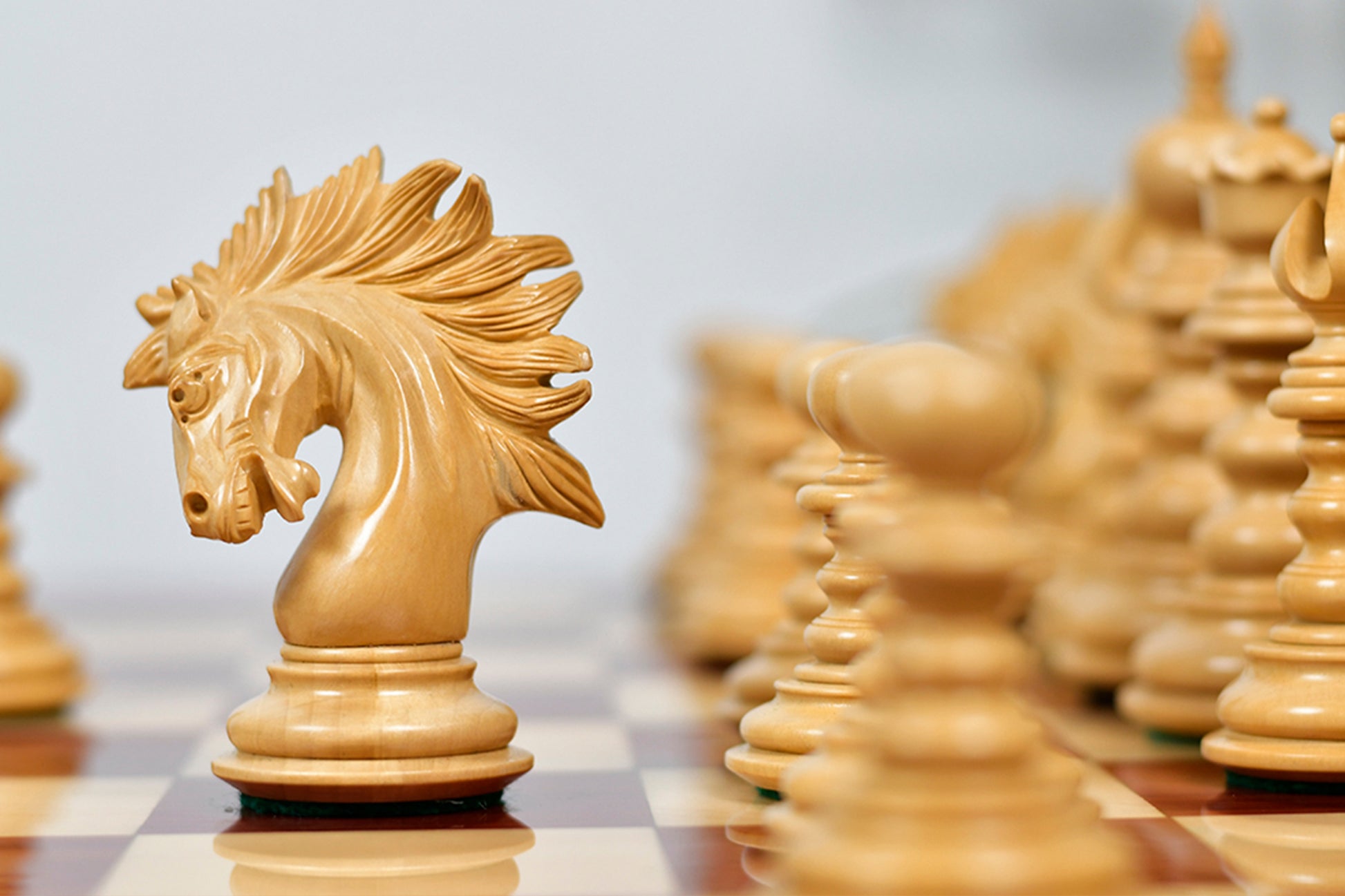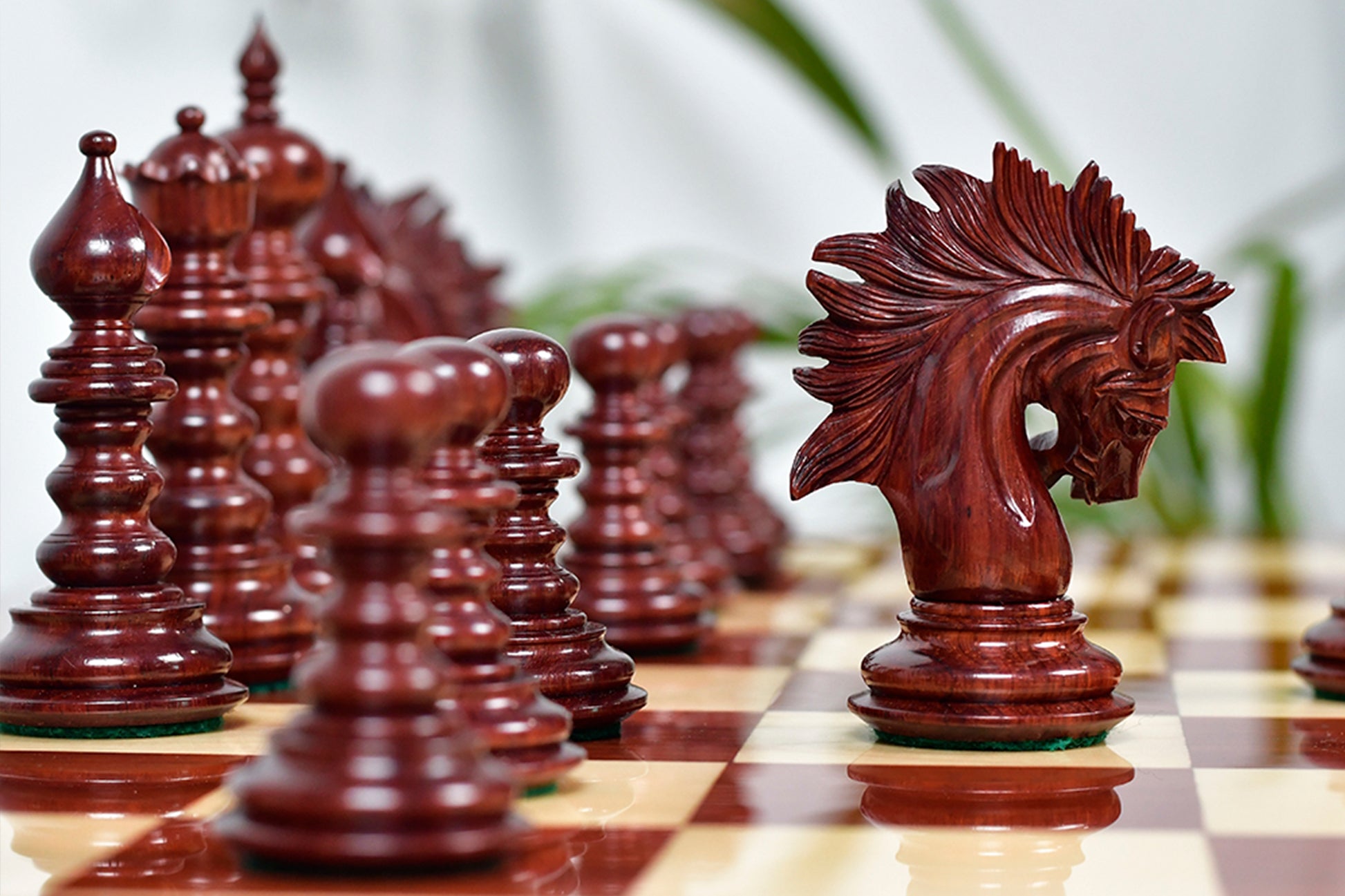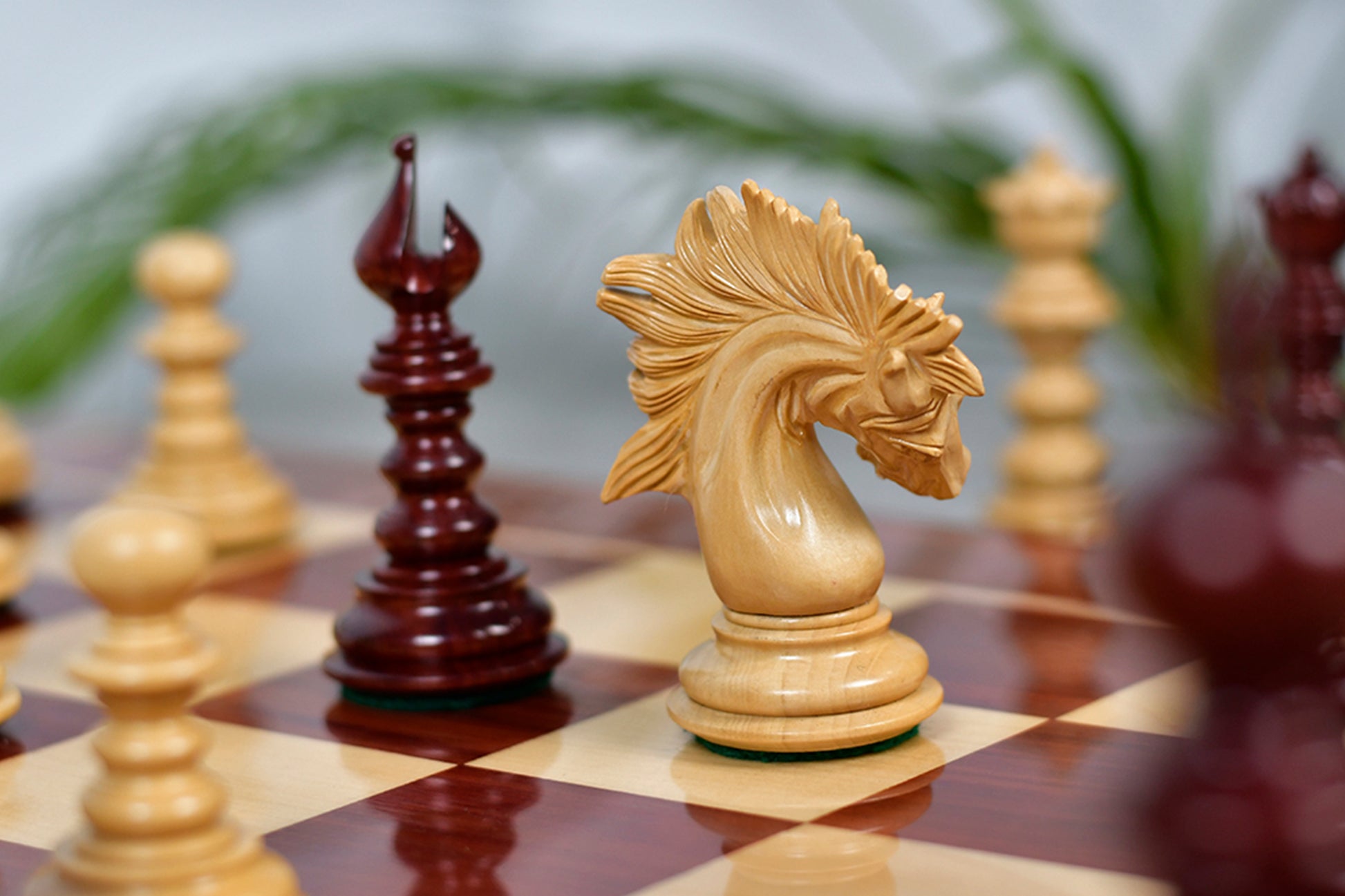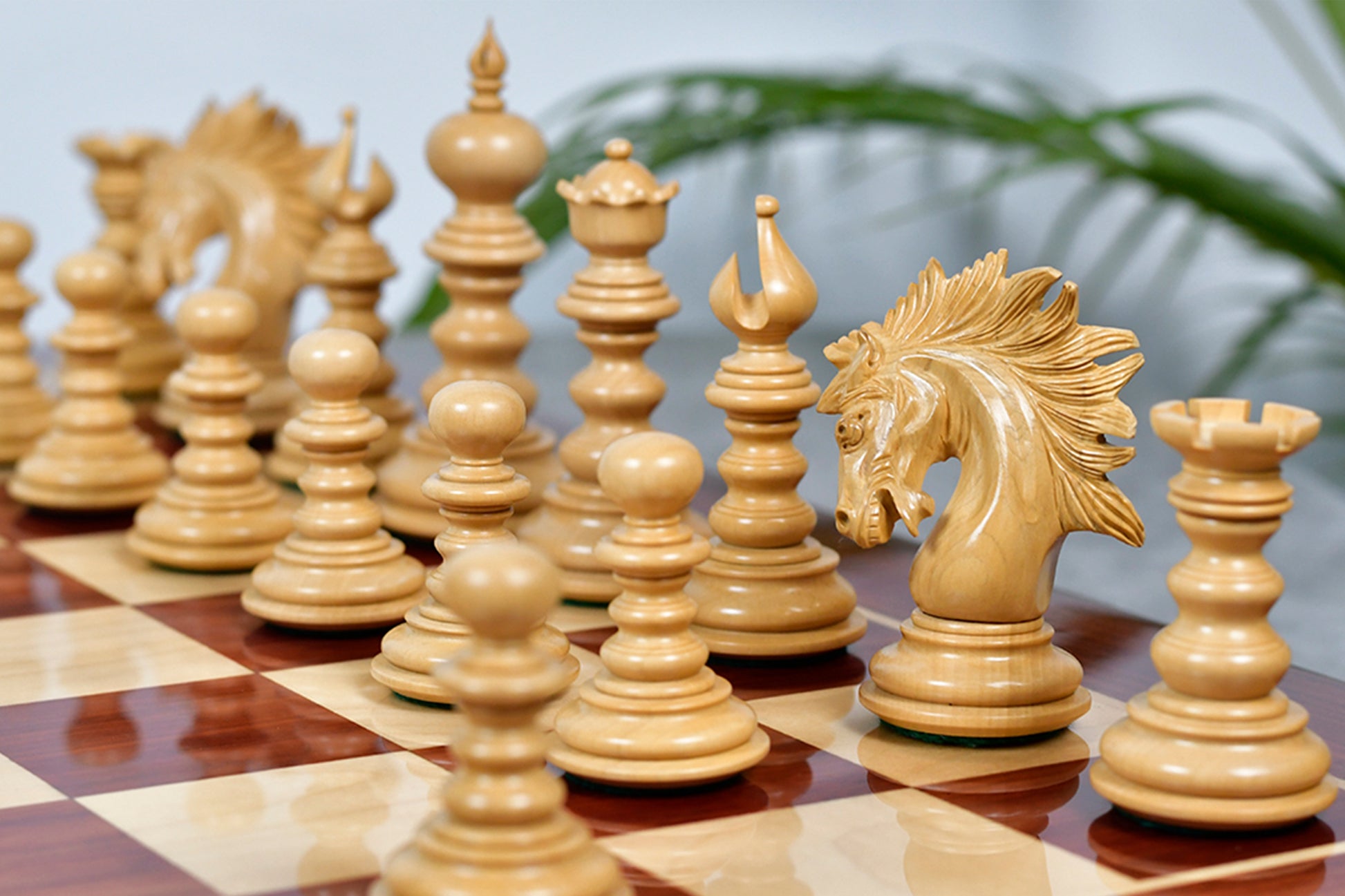 The St. Petersburg Luxury Artisan Series Chess Pieces in Bud Rosewood / Boxwood - 4.3" King with Storage Box