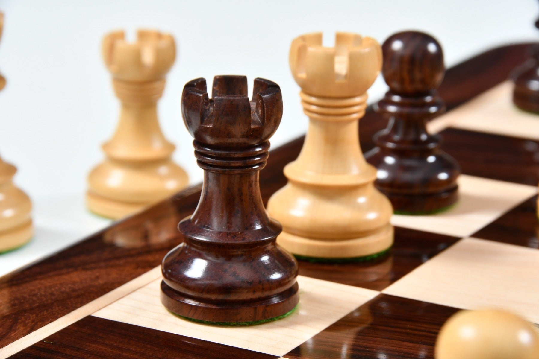 The Taj Staunton Series Carved Chess Pieces in Rosewood & Boxwood - 3.5" King