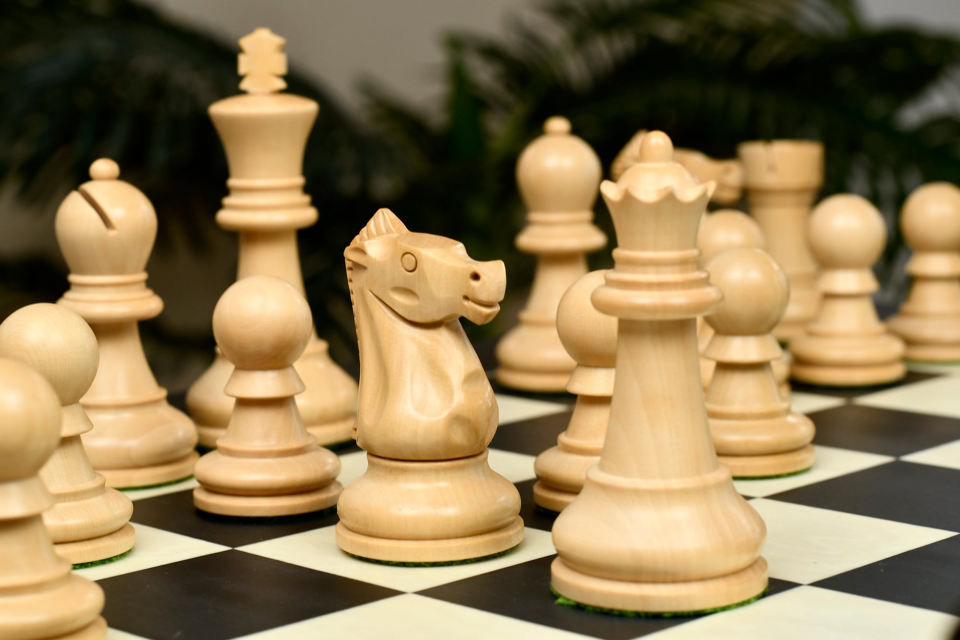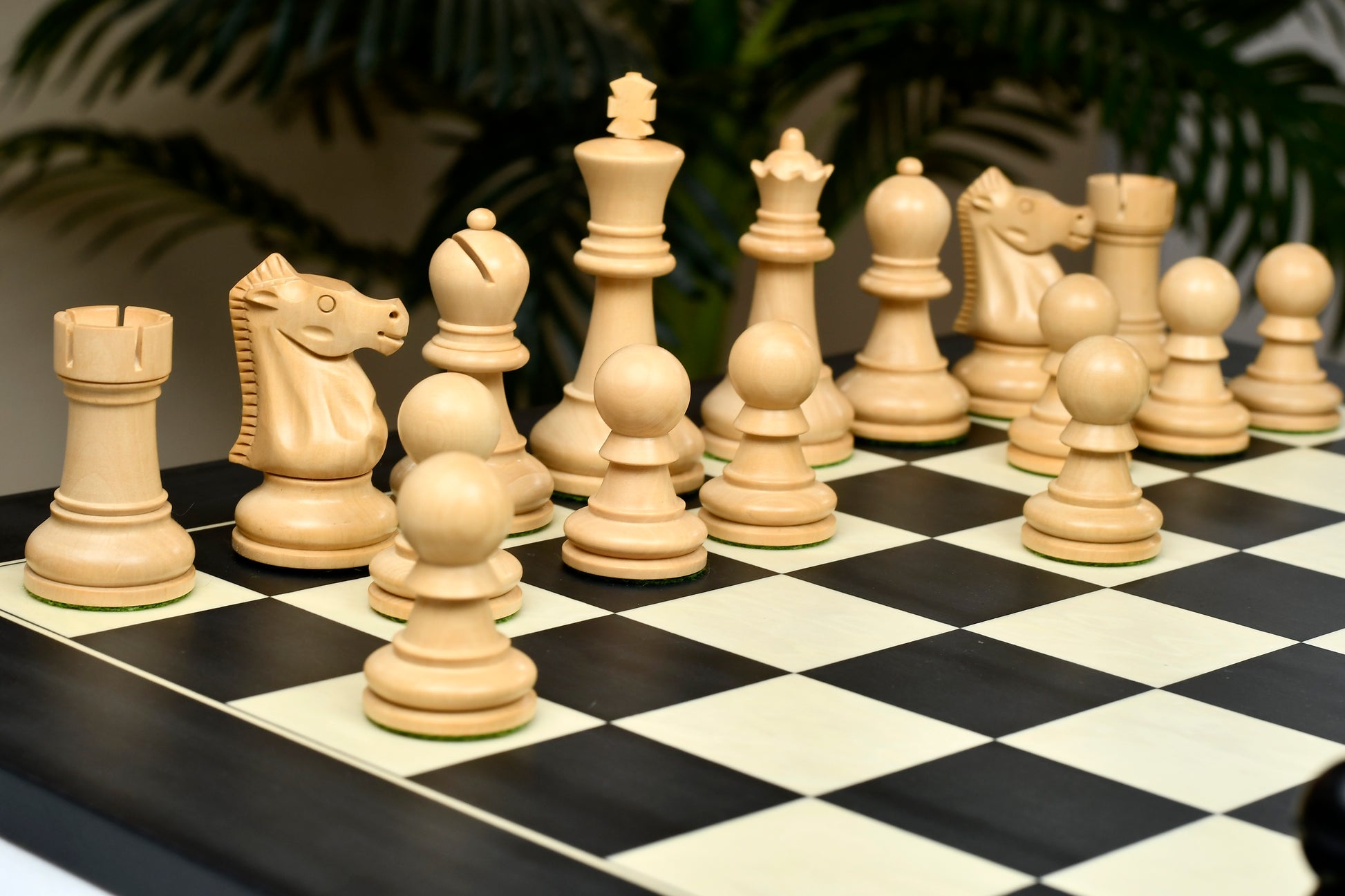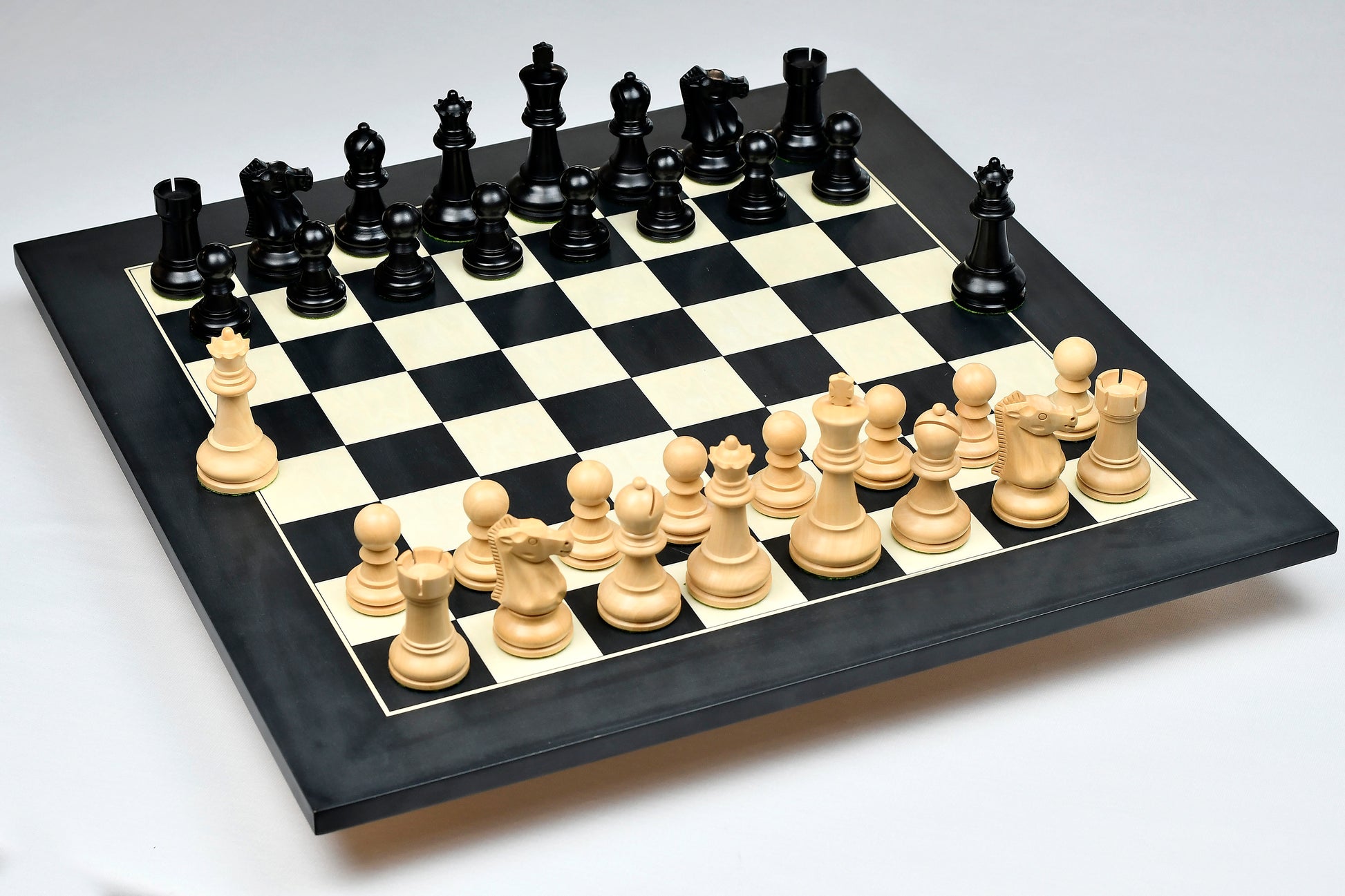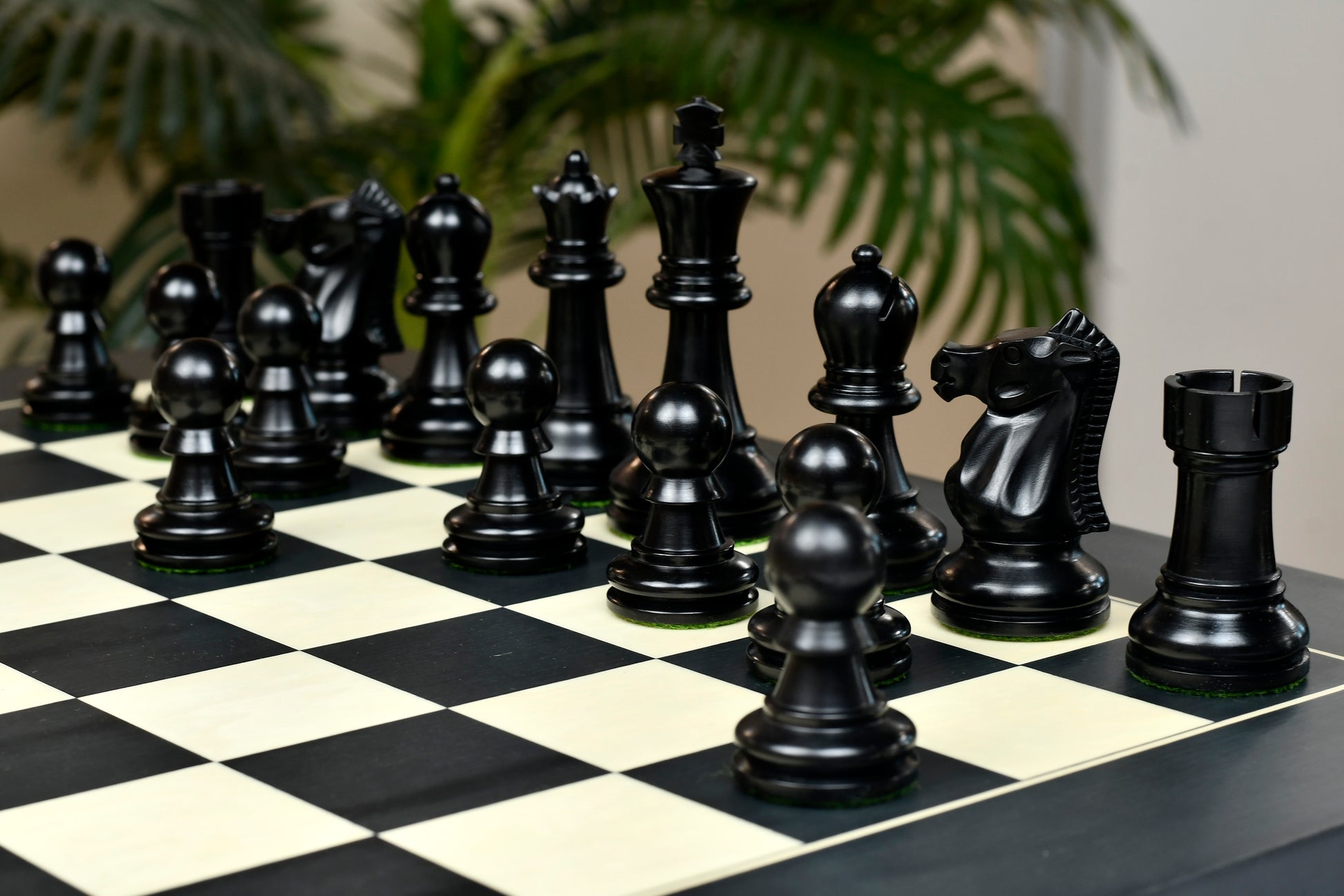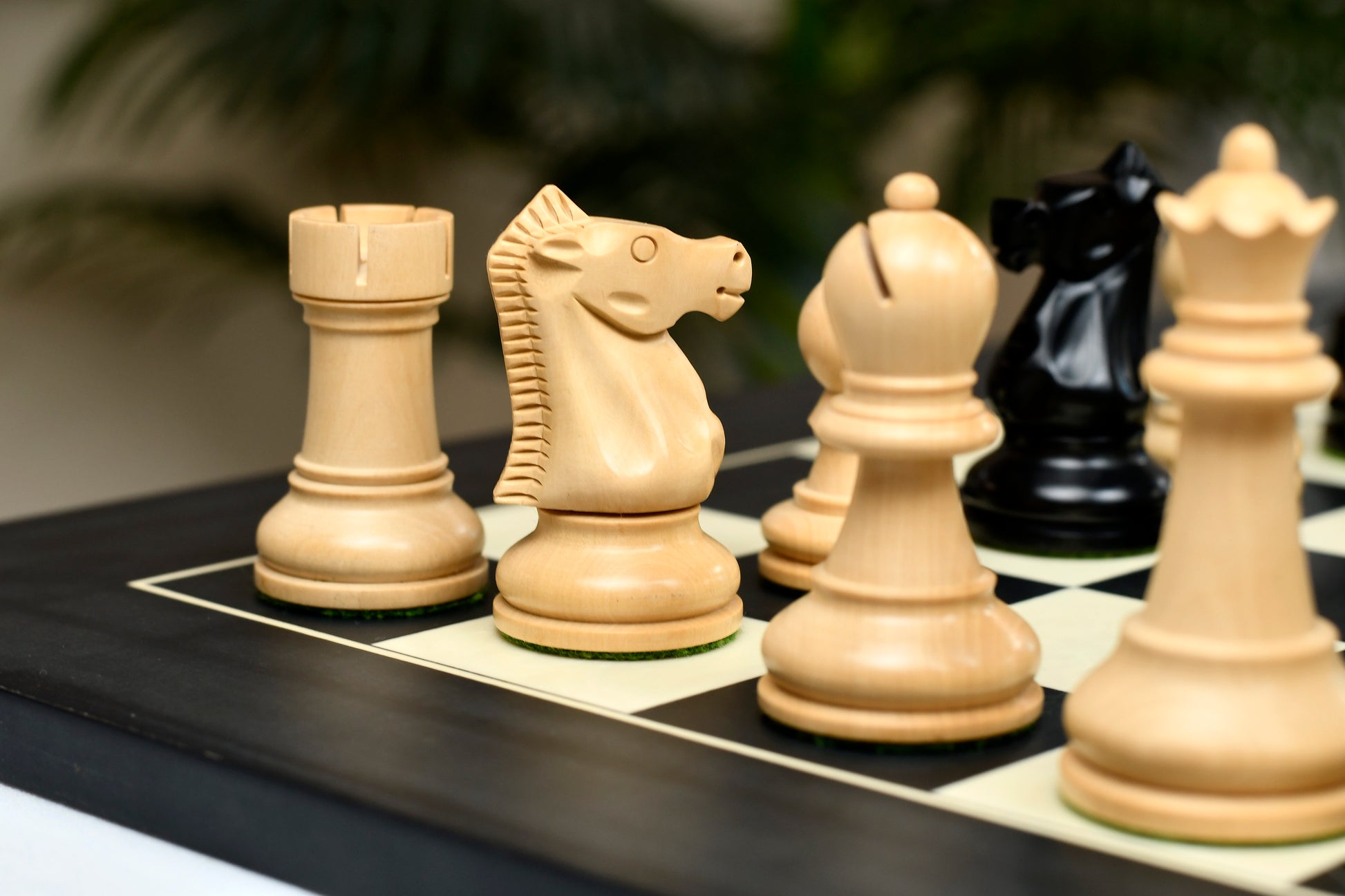 We are pleased to announce the Ultimate Series Staunton chess set exquisitely made from ebonized and natural boxwood. The set features a Tournament standard 3.75" King with a base diameter of 1.65 inches. This is a captivated design featuring the magnificently robust and remarkable knight.