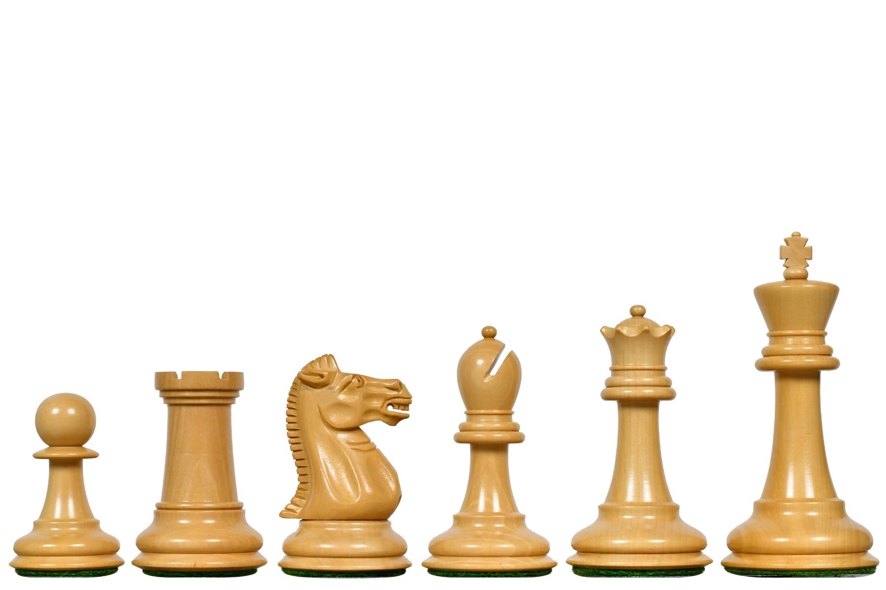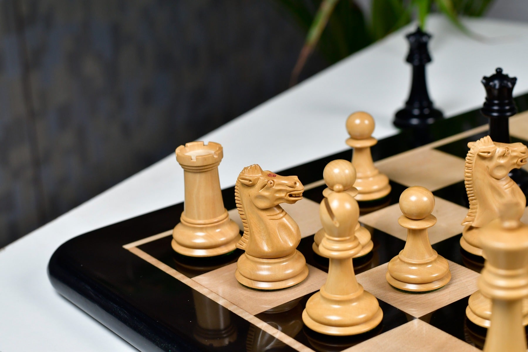 Vintage Reproduction of 1915-1925 Nimzovich Staunton Chess Pieces in Ebony & Boxwood – 3.75" King with King's Side Stamping