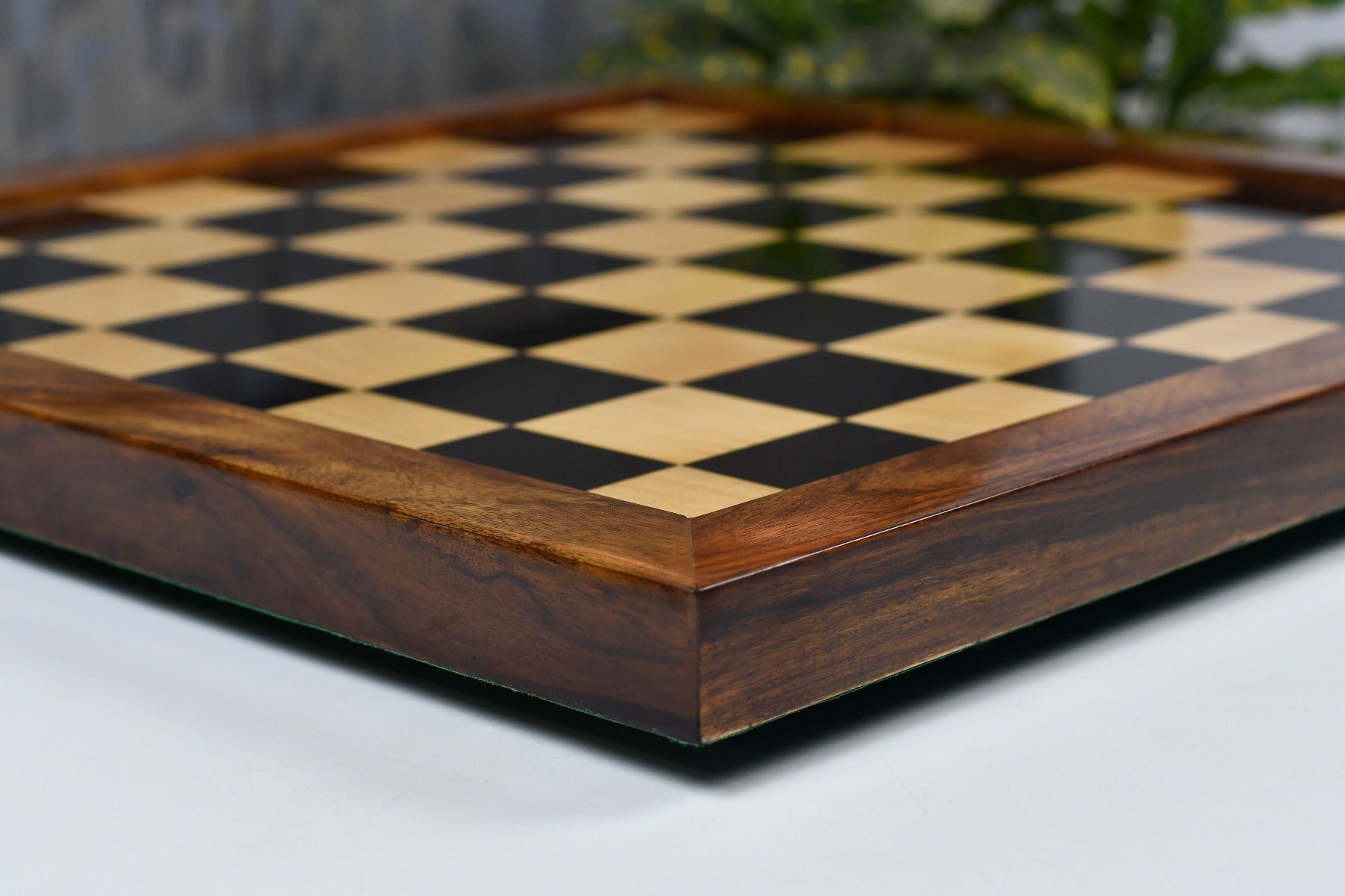 Wooden Chess Board in Ebony & Maple with Sheesham Wood Frame 21.8" - 60 mm
