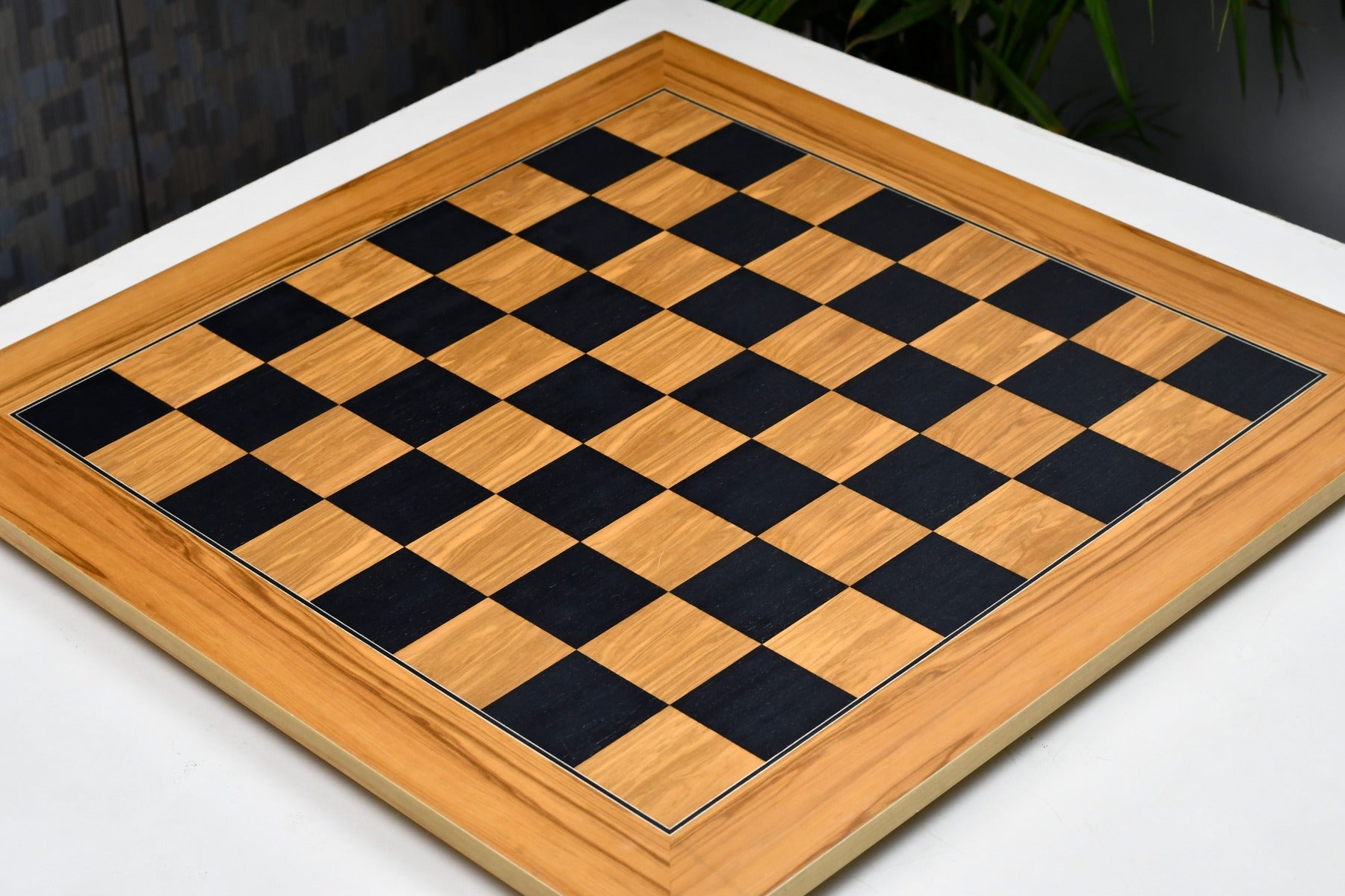 Wooden Deluxe Black Dyed Poplar & Olive with Matte Finish Chess Board 22" - 55 mm