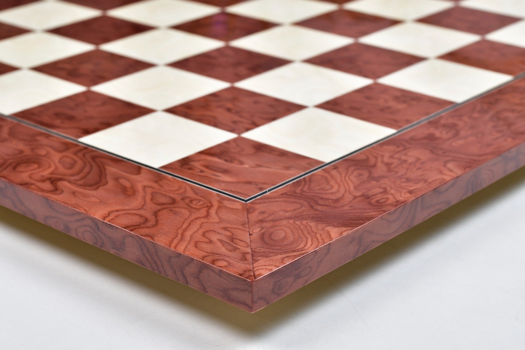 Wooden Red Ash Burl Maple Hi Gloss Finish Chess Board 22" - 55 mm